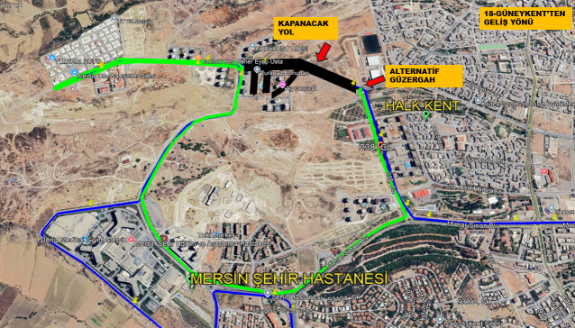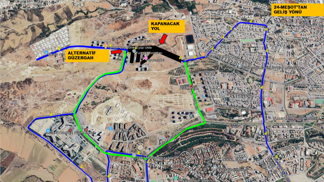 Araçlarımız çalışma süresince mevcut güzergâh yerine aşağıdaki alternatif rotayı izleyecektir: