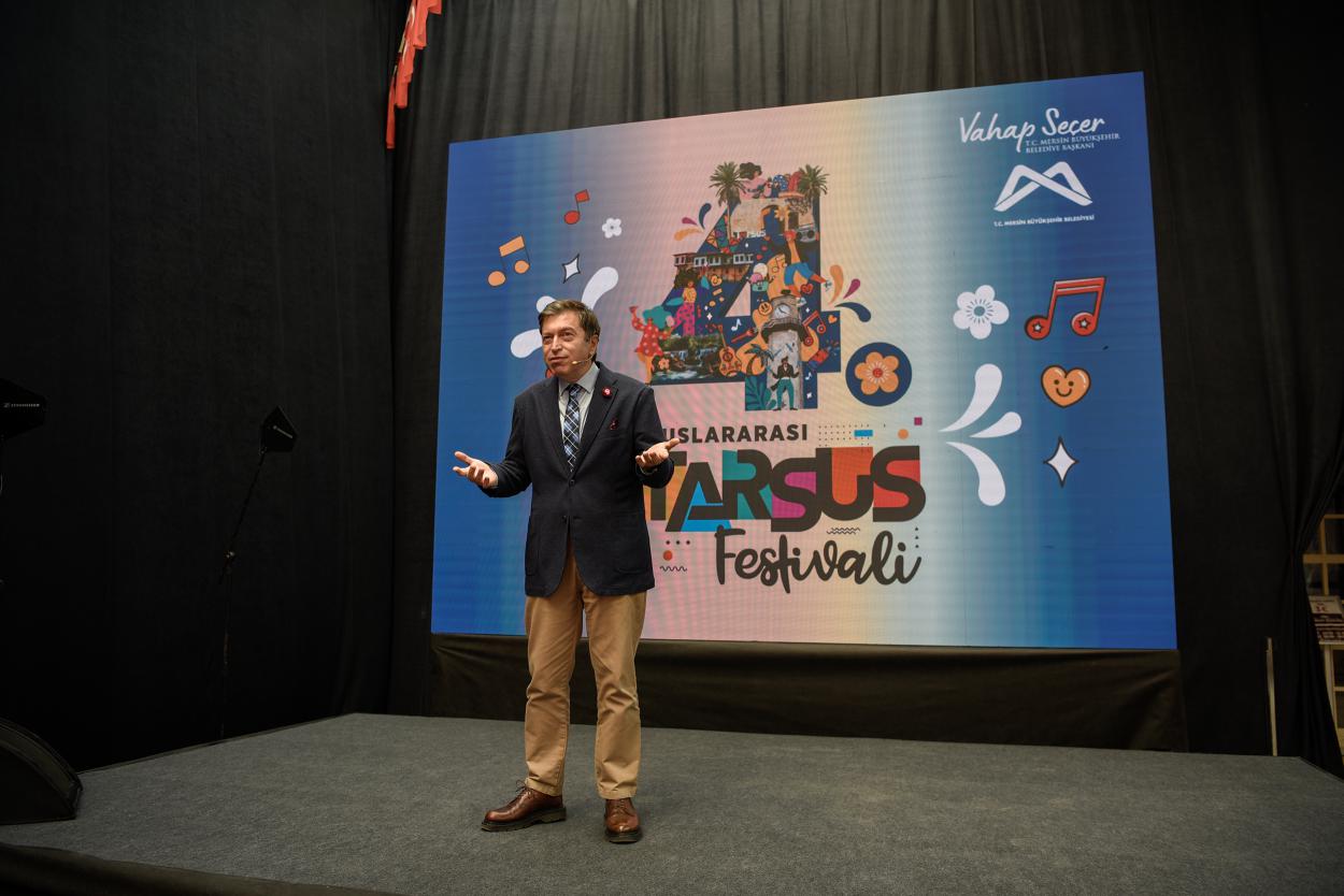Eğlenceli gösterilerin, konserlerin ve lezzet şölenlerinin yanı sıra interaktif etkinlikleri ve bilgi dolu söyleşileri ile öne çıkan ‘4. Uluslararası Tarsus Festivali’, Tarsus’un 10 bin yıllık kadim tarihinin sergilendiği Tarsus Müzesi’nde Gazeteci Mehmet Serdar Kuzuloğlu tarafından, ‘Yapay Zekalı Organik İnsan’ başlıklı söyleşi gerçekleştirildi.