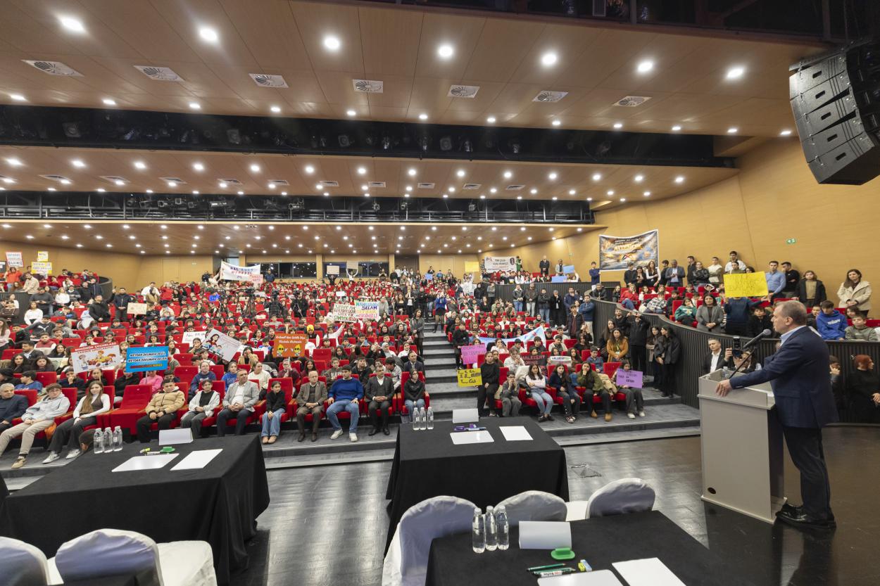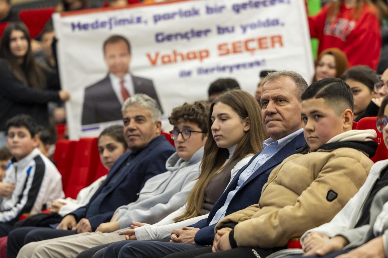 Gençlerin coşkulu alkışları eşliğinde konuşmasına başlayan Başkan Seçer, “Hepimizin sesi gür çıksın. Hepimiz duygularımızı, düşüncelerimizi ifade edelim, fikirlerimizi özgürce konuşalım. Demokrasi ve özgürlük budur” diyerek, Ulu Önder Gazi Mustafa Kemal Atatürk’ün işaret ettiği çağdaş ve muasır medeniyetler seviyesine özgür ve demokratik gençler ile çıkılabileceğini vurguladı. Yarının umudu gençleri ve çocukları çok sevdiğini söyleyen Seçer, “Türkiye’nin ve dünyanın geleceği sizsiniz. Bizim yarınlara dair tüm beklentimiz sizin üzerinizden. Daha güzel, barış ve kardeşlik dolu, savaşların olmadığı bir dünyayı istikbal vadeden siz gençler gerçekleştireceksiniz. Onun için sizlerin üzerine titriyoruz” diye konuştu.