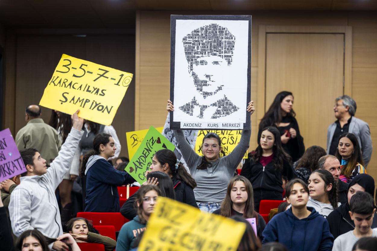 Mersin Büyükşehir Belediyesi Kongre Merkezi’nde gerçekleştirilen etkinlikte salonu dolduran öğrenciler; ‘Eğitime inanan başkan, bilgiyle büyüyen biz’, ‘Bugünün çocukları yarının umutlarıyız’, ve ‘Hedefimiz parlak bir gelecek, gençler bu yolda Vahap Seçer ile ilerleyecek’ yazılı dövizlerle coşku yaratırken, Başkan Seçer’in salona girmesiyle birlikte öğrencilerin heyecanı ve enerjisi daha da arttı. Büyükşehir Belediyesi’nin öğrencilere yönelik düzenlediği bu tür etkinlikler, gençlerin sınav sürecini daha verimli ve sağlıklı geçirmesine katkı sunarken; hem bilgilerini pekiştiren hem de keyifli vakit geçiren öğrenciler de sınav öncesi streslerini atma fırsatı buldu.