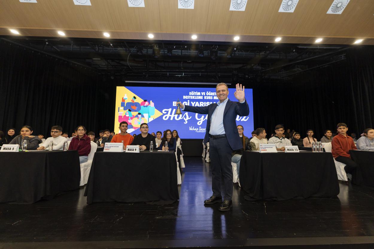 Türkiye Belediyeler Birliği (TBB) Başkan Vekili ve Mersin Büyükşehir Belediye Başkanı Vahap Seçer, Mersin Büyükşehir Belediyesi Sosyal Hizmetler Dairesi Başkanlığı Eğitim Hizmetleri Şube Müdürlüğü tarafından bu yıl 5’incisi düzenlenen “MBB Eğitim ve Öğretimi Destekleme LGS Kurs Merkezleri Bilgi Yarışması”nda yer aldı. Yarışmaya, Mersin Büyükşehir Belediyesi’nin il genelindeki 21 kurs merkezinden 63, Çamlıyayla ilçesinde etüt desteği alan 3 öğrenci olmak üzere toplam 66 LGS öğrencisi katıldı.