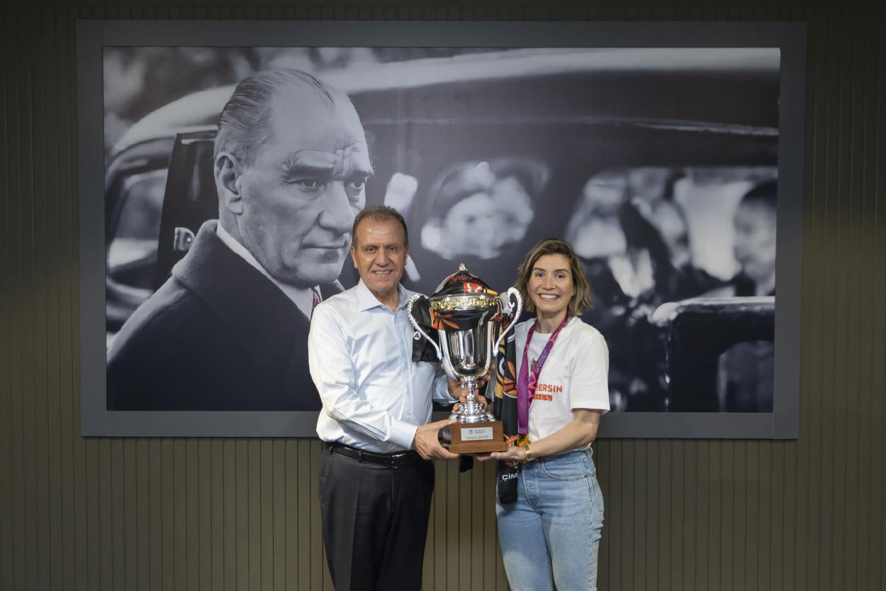 Mersin Büyükşehir Belediyesi’nin spora desteğinin büyük olduğunu vurgulayan ÇBK Mersin Kulüp Başkanı Serdar Çevirgen, “Ne zaman yanınıza gelsek destek oldunuz. Şehir adına spora yaptığınız katkılardan dolayı çok teşekkür ediyoruz” dedi.