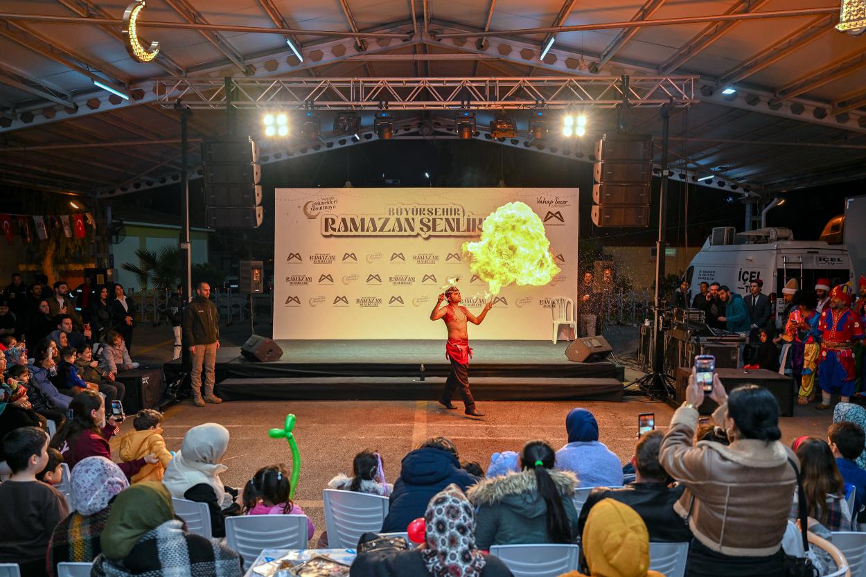 7’den 77’ye her yaştan vatandaşın düşünüldüğü programda; Ramazan ayının paylaşma, dayanışma ve kardeşlik iklimi, Erdemli’de kurulan iftar sofrasında güçlü bir şekilde hissedildi. İftar öncesi alanda maniler söylenirken tasavvuf müziği eşliğinde de konser verildi. Öte yandan alanda Osmanlı macunu ve patlamış mısır ikramı yapılırken, çocuklar için yüz boyama ve balon etkinlikleri düzenlendi. Hacivat ile Karagöz oyunu, meddah gösterisi, kanto gösterisi ve katip-katibe oyunu gibi geleneksel sahne performansları da programa renk kattı.