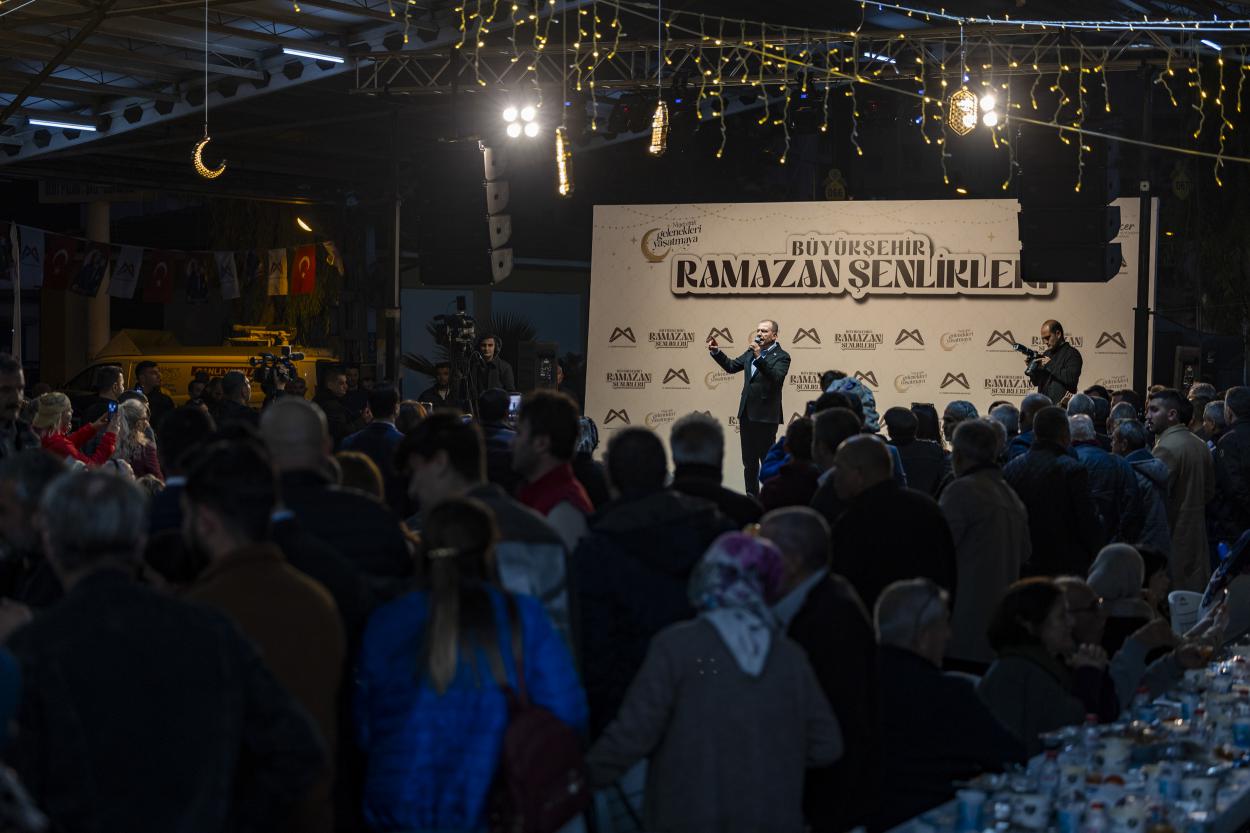 Büyükşehir Belediyesi’nin organizasyonuyla geçmişin Ramazan neşesi günümüze taşınırken, aynı sofrada buluşan binlerce vatandaş birlik ve beraberliğin en güzel örneklerinden birini sergiledi. Program, Başkan Seçer’in iftarın ardından Erdemli’de görev yapan Mahalle Muhtarları ile bir araya gelmesi ile sona erdi.