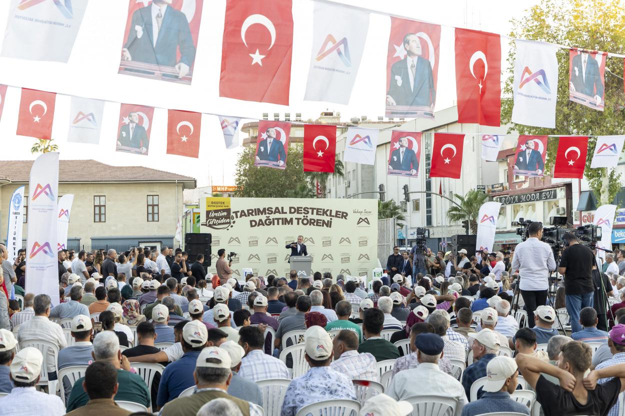 Konuşmasına Tarsus’ta bulunmaktan ve Tarsuslular ile bir arada olmaktan duyduğu mutluluğu dile getirerek başlayan Başkan Seçer, üretimi ve üreticileri önemsediklerini söyledi. Türkiye’nin bir tarım ülkesi olduğunu belirterek, “Türkiye bir tarım ülkesi. Türkiye, Cumhuriyet kurulduğunda köylü, çiftçi ve üretici memleketiydi. Zamanla her ne kadar sanayi, teknoloji ve farklı sektörler gelişse de biz çiftçi bir milletiz” dedi.