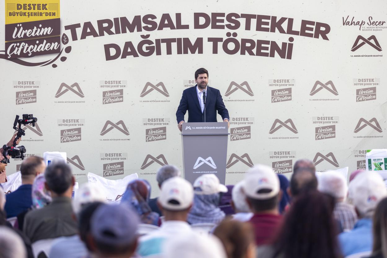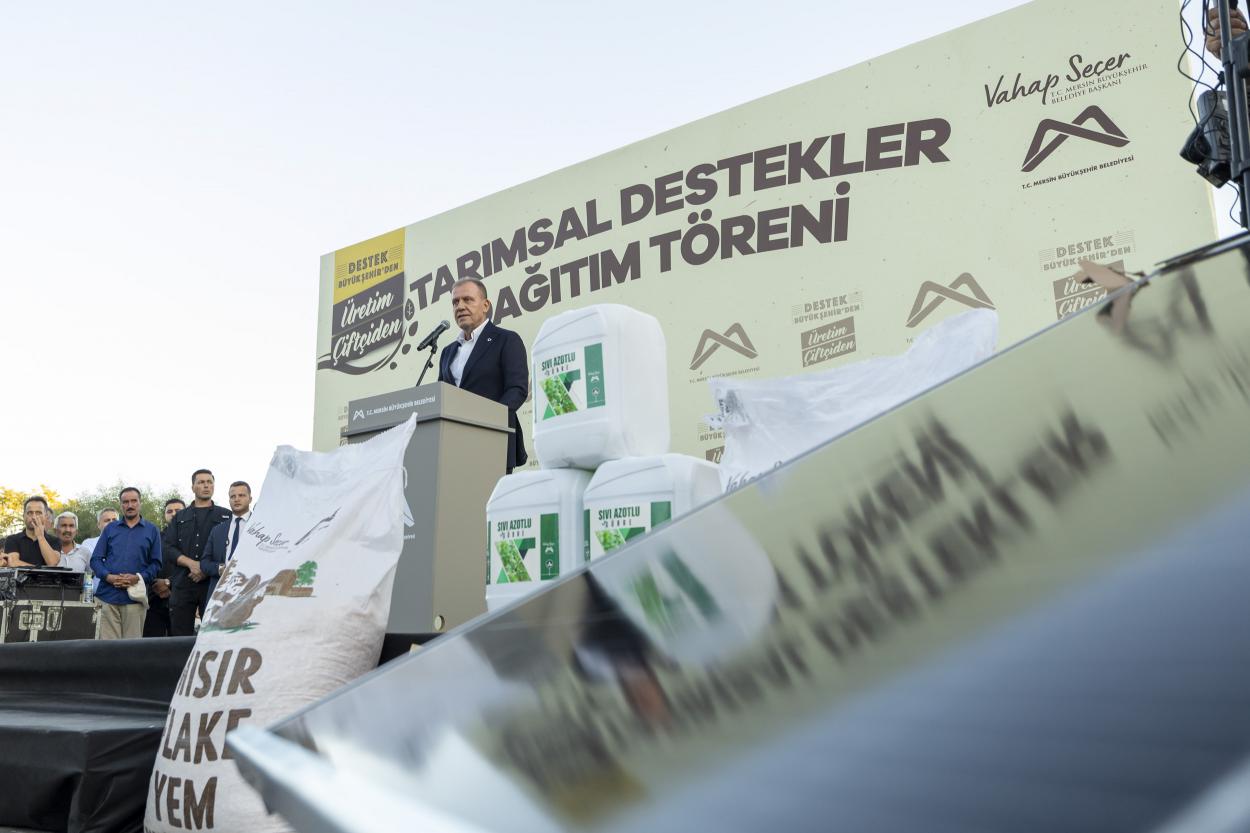 Dağıtım töreni ile 4 farklı kalemde toplam 41 milyon TL değerinde desteğin üreticilere sağlandığını belirten Seçer, Büyükşehir olarak tarımsal desteğe olan bütçe miktarının her yıl artarak devam ettiğini ve 2024 yılında 119 milyon TL olan miktarın 2025 yılında yüzde 80 artış ile 215 milyon TL’ye yükseldiğini kaydetti. Desteklerin hiçbir siyasi ayrım gözetilmeksizin gerçekleştirildiğinin altını çizen Seçer, “Biz CHP olarak Türkiye’de ana muhalefet partisiyiz ve iktidarın en büyük adayıyız. Ana muhalefet partisi olarak da en fazla adaletsizlikten şikâyetçi oluyoruz. ‘Sen AK Partili’ysen alamazsın’ veya ‘Sen MHP’liysen alamazsın, CHP’liysen alabilirsin’ anlayışı bizde yok. Adaletsizliğin ta kendisi bu değil mi? Biz adaletsizliği toprağın 7 kat dibine gömdük. Herkes bizim gözümüzde eşit birer yurttaşımız. Bize oy veren de vermeyen de sağ olsun. Emin olun ki bir önceki seçimde bize oy vermeyen seçmenler bile bir dahaki seçimde bize oy verecek” ifadelerini kullandı.