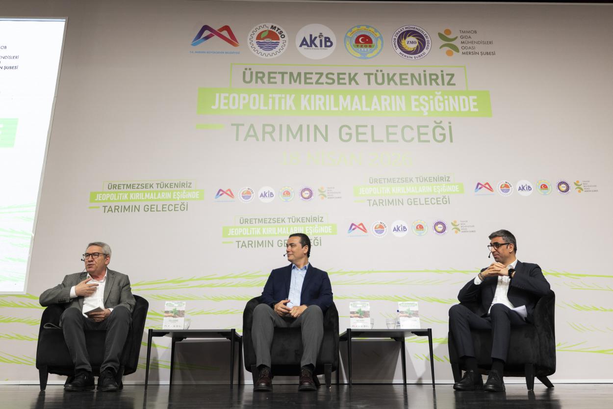 MTSO Yönetim Kurulu Başkanı Hakan Sefa Çakır ise konuşmasında, bu yıl 5.’si düzenlenen ‘Üretmezsek Tükeniriz’ konferans serisinin ‘Jeopolitik Kırılmaların Eşiğinde Tarımın Geleceği’ başlıklı programında artık sadece tarımı değil; tarımın geleceğini ve gıdanın kaderini de konuşacaklarının altını çizerek, meselenin sadece Türkiye’nin meselesi olmadığına değindi. Tarımın sadece bir sektör değil, bir ulusal güvenlik meselesi olduğunu da kaydeden Çakır, Akdeniz havzasında yer alan diğer ülkelerin de benzer risklerle karşı karşıya olduğuna dikkat çekerek ortak akıl ile üretimi işaret etti. Sürdürülebilir tarım modelinde Mersin’in bu dönüşümün öncüsü olabileceğini kaydeden Çakır, “Toprağıyla, iklimiyle, üretim kültürüyle ve lojistik gücüyle bu şehir sadece üretimin değil, akıllı ve planlı tarımın merkezi olabilir. Bunun için birlikte hareket etmek zorundayız. Bizler üretimin sürdürülebilirliği, üreticinin korunması, tarımın geleceğe hazırlanması için bu sürecin takipçisi olacağız. Çünkü biliyoruz ki; üretmezsek tükeniriz ama israf edersek de kaybederiz. Plansız üretirsek de geleceğimizi riske atarız” dedi ve organizasyonda emeği geçen kurumlara teşekkürlerini iletti.