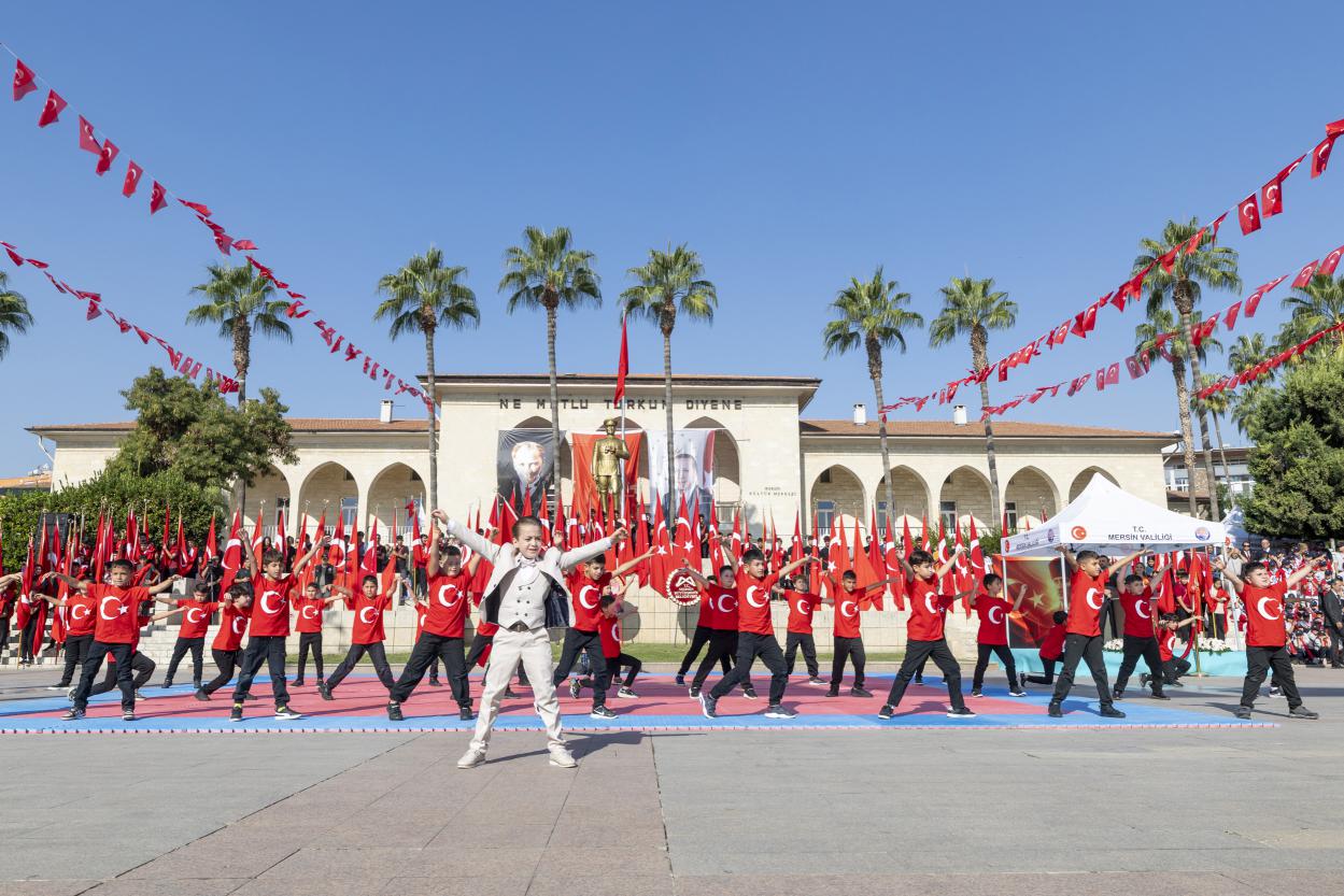 Daha sonrasında Şehit Yiğitcan Çiğa İlkokulu Halk Oyunları Ekibi tarafından ‘Cumhuriyet Müzikali’ adlı gösteri sergilendi. Ardından Jandarma Komando Gösteri Timi tarafından tüfekli hareketler gösterisi yapıldı. Gençlik ve Spor İl Müdürlüğü’nün ritmik jimnastik, karate ve kata gösterilerinin de sergilendiği programda; Mersin Büyükşehir Belediyesi Halk Oyunları Ekibi tarafından yöresel oyunlar sergilenirken, Mersin Büyükşehir Belediye Bandosu da Cumhuriyet coşkusunu verdikleri konser ile taçlandırdı.