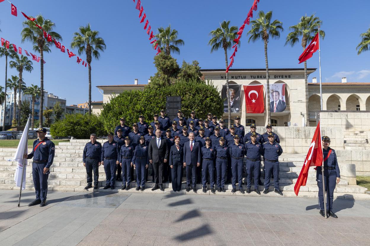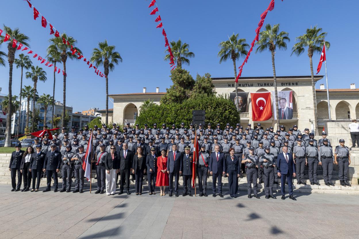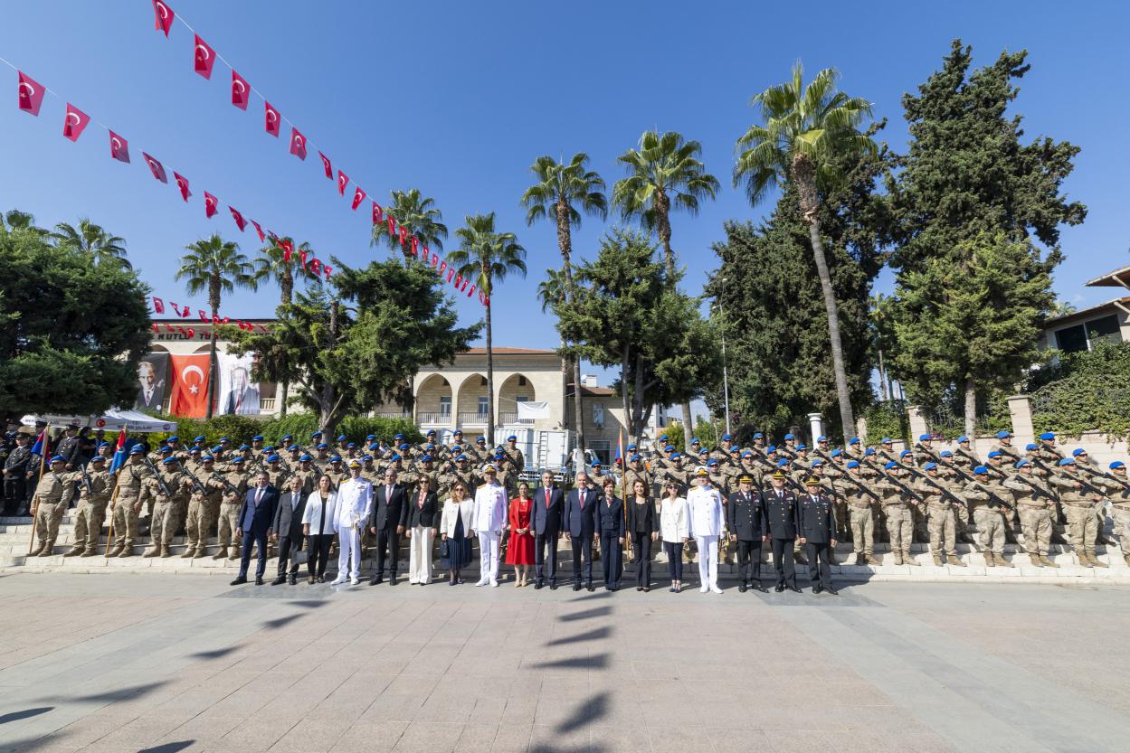 Programda ayrıca Akdeniz Bölge ve Garnizon Komutanlığı Bandosu eşliğinde resmigeçit töreni yapıldı. Geçiş esnasında ise Adana İncirlik’ten kalkan ve Türk Hava Kuvvetleri (THK) 152. Akıncı Filo’ya bağlı F-16 savaş uçakları, gökyüzünün semalarında gösterilerini sergiledi. Mersin Büyükşehir Belediyesi İtfaiye Dairesi Başkanlığı ile Zabıta Dairesi Başkanlığı ekipleri de geçit töreni esnasında vatandaşlardan büyük alkış aldı.