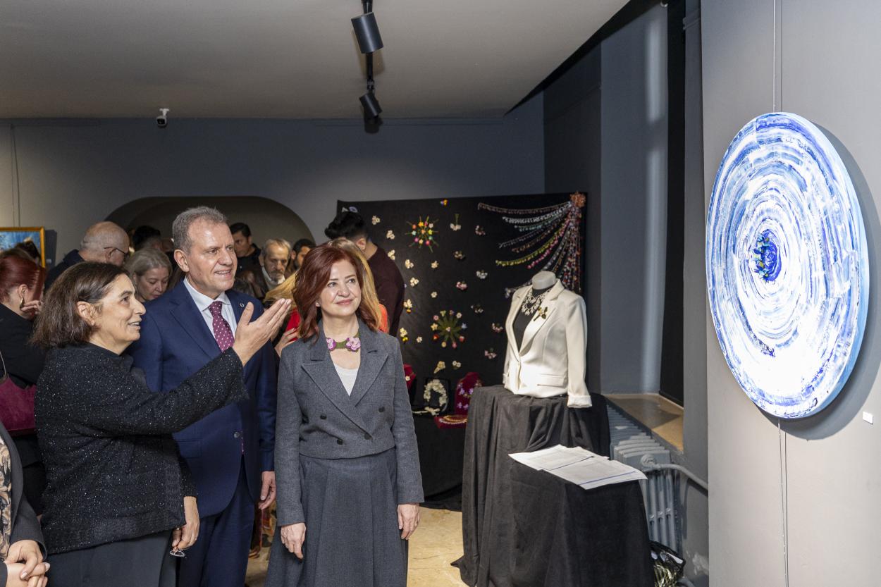 Konuşmaların ardından, protokol üyeleri ve iğne oyası yapımında emeği geçen üretici kadınların katılımı ile kurdele kesilerek 31 Ocak tarihine kadar açık olacak olan ‘Sessiz Mirasın Sesi’ sergisi ziyarete açıldı. Açılışın ardından sergiyi gezen Başkan Seçer, mirasın ilmek ilmek işlendiği iğne oyasının yağlı boya ile tuvalde buluştuğu ‘12 Ay’ ve ‘Emanet’ isimli tabloları satın alarak sergiye destek verdi.