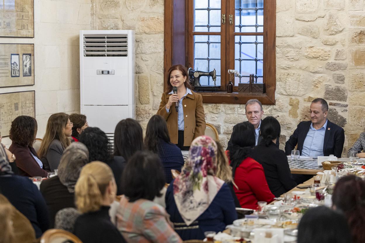 Eski Gülnar Oteli Gastronomi ve Yöresel Ürün Konağı’nda düzenlenen programda TBB Başkan Vekili ve Mersin Büyükşehir Belediye Başkanı Vahap Seçer ile Mersinden Kadın Kooperatifi Başkanı Meral Seçer’in yanı sıra; CHP Mersin İl Başkanı Koral Ömür, CHP Mersin İl Kadın Kolları Başkanı Gülşah Yıldırım Genç, il kadın yöneticileri, ilçe kadın kolları başkanları ve kadın muhtarlar yer aldı.