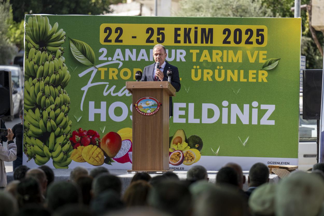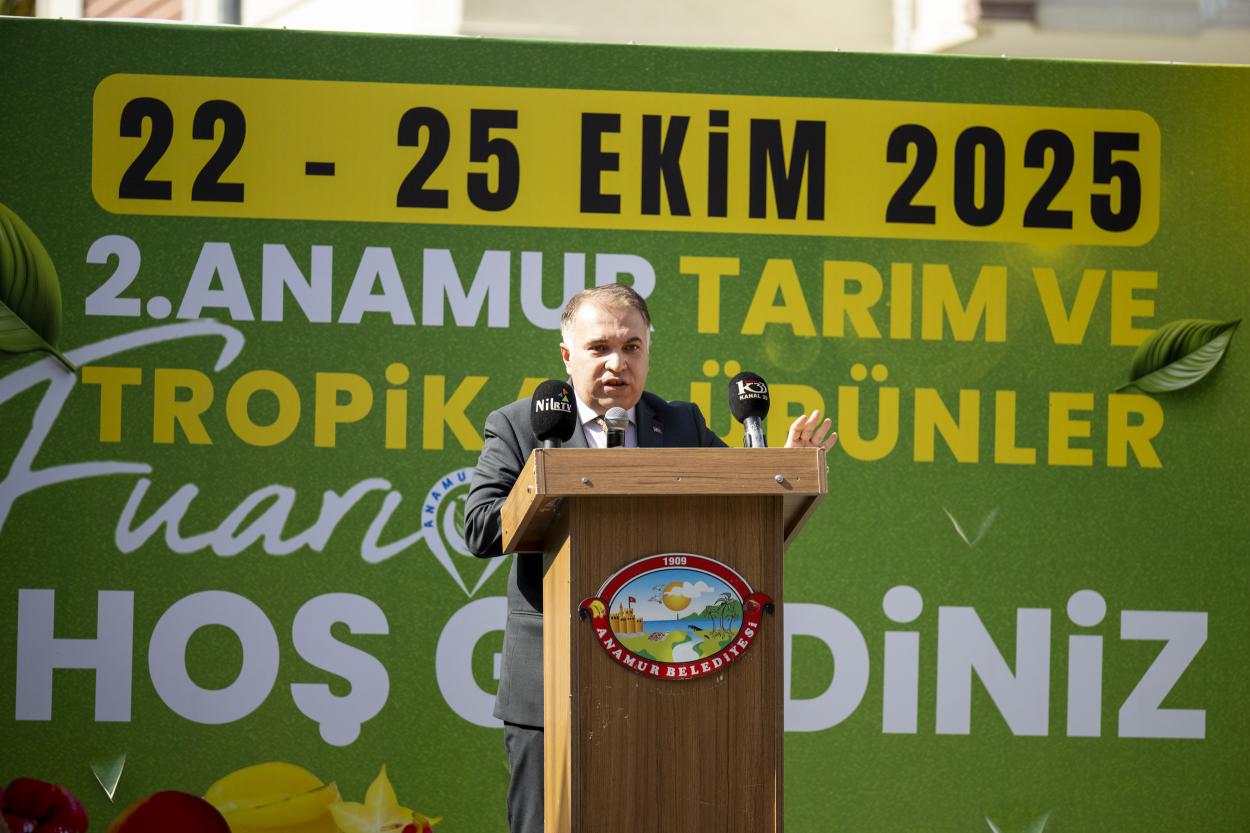 Anamur Belediye Başkanı Durmuş Deniz ise Anamur’da muz başta olmak üzere çilek, avokado, mango, ejder meyvesi, passiflora gibi 40’a yakın tropikal ürünün yetiştirilmekte olduğunu belirtti. Bu sayede üretime ve Türkiye ekonomisine yüksek miktarda katkı sunduklarından bahseden Deniz, “Tarımsal üretimde emeğin ve alın terinin bu kadar yoğun olduğu bir kentte tarım fuarı düzenlemek, bir görev olmanın yanı sıra bu topraklara duyduğumuz vefanın bir karşılığıdır. Bu kentte ticari faaliyetler yoğun olarak devam ediyorsa, refah seviyemiz yüksekse, birçok il ve ilçeye göre daha zengin bir kentte yaşıyorsak bunun başlıca sebebi özellikle kadınların çok çalışkan olması ve çalışkan insanların ilçemizde tarımsal üretimi çok iyi bir seviyede yönetmesidir” dedi.