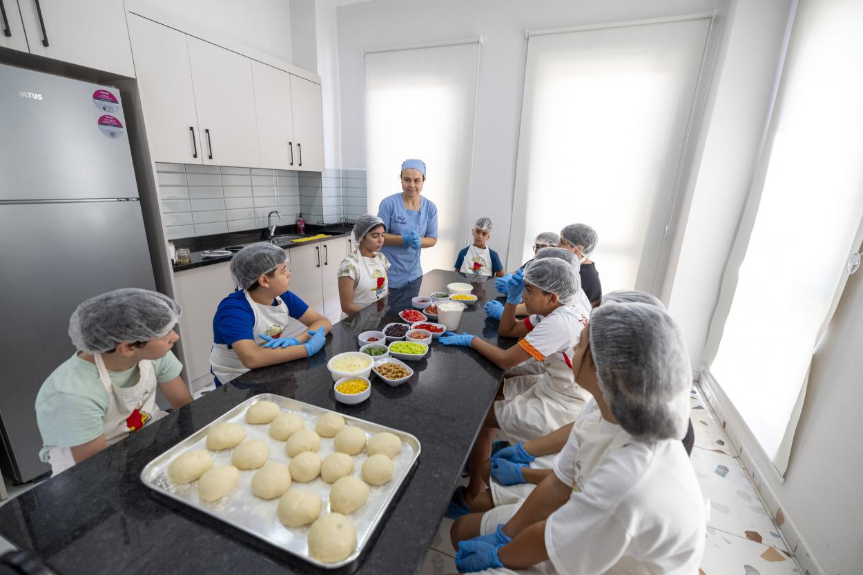 Yaratıcı Mutfak Atölyesi, çocukların doğadan mutfağa uzanan bir yolculukla yemek yapım sürecini deneyimlemelerine olanak tanıyor. Atölyenin minik şefleri bu hafta pizza yapımını öğrendi. Çocuk Kampüsü’nün içinde yer alan Hobi Bahçesi’nden toplanan fesleğenleri de pizzalarına ekleyen çocuklar, bu atölyede hem el becerilerini geliştiriyor hem de bir şeyler üretebilmenin mutluluğunu yaşıyor. 5-14 yaş grubuna hitap eden Çocuk Kampüsü’nde, Mutfak Atölyesi’ne ise 7-14 yaş arası çocuklar kabul ediliyor. Çocuklar burada hem yaratıcılıklarını ve düşünme becerilerini geliştiriyor hem de keyifli vakit geçirerek sosyalleşme imkanı buluyor.