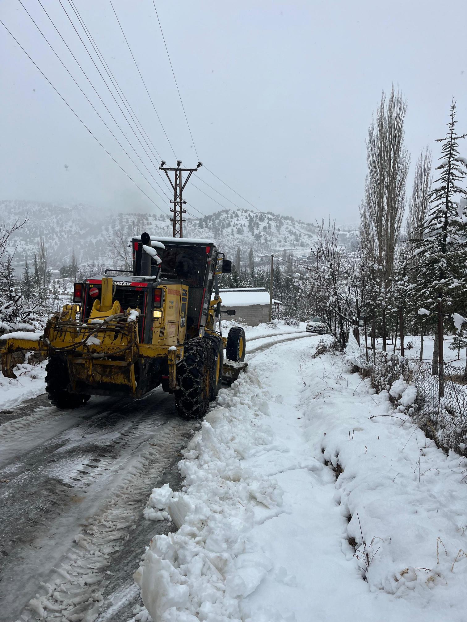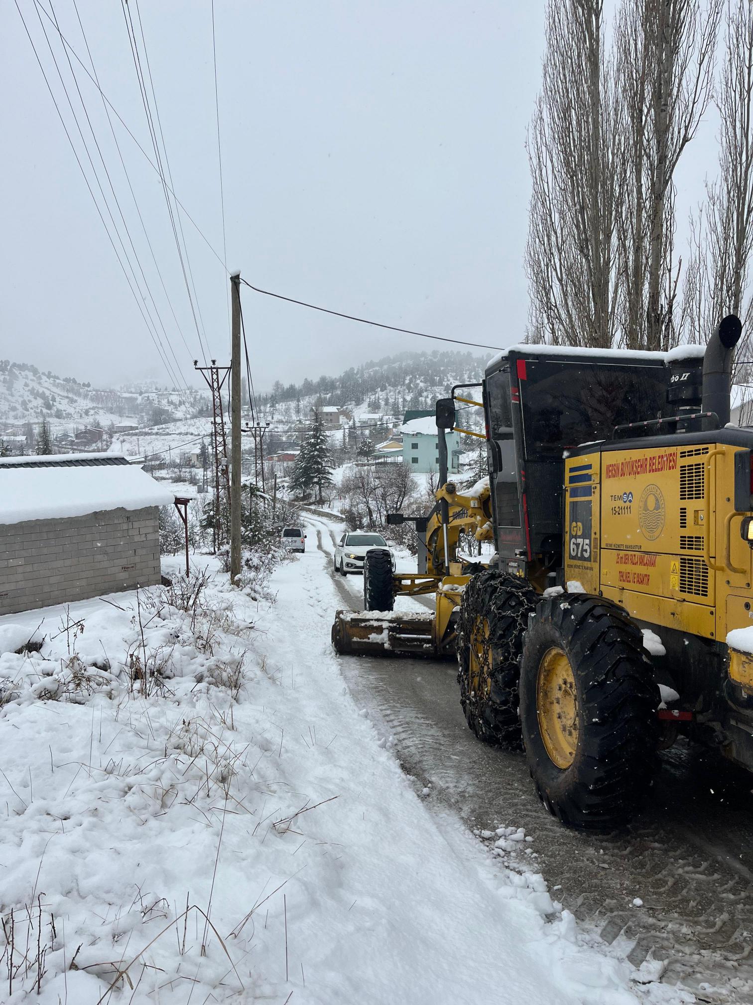 Ulaşımın aksamaması için sahada yoğun bir çalışma yürüten Büyükşehir ekipleri, özellikle kırsal mahalleler ve bağlantı yollarında kar küreme ve yol açma çalışmalarını aralıksız olarak devam ettiriyor.