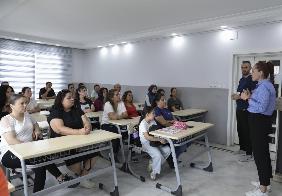Mersin Büyükşehir Belediyesi Sosyal Hizmetler Dairesi Başkanlığı’na bağlı Tarsus Eski Ömerli Eğitim ve Öğretimi Destekleme Kurs Merkezi’nde, yeni eğitim öğretim döneminin başlaması dolayısıyla veli bilgilendirme toplantısı düzenlendi. Mersin Büyükşehir Belediyesi’nin 21 kurs merkezinde düzenlediği toplantılarda, velilere öğrencilerin sınav hazırlık süreci ve iletişim konularında bilgilendirme yapıldı.