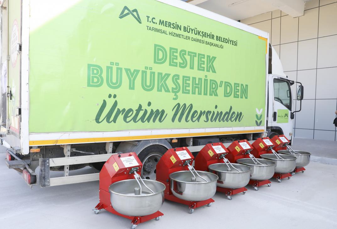 Kırsalda üretimi büyütmeyi amaçlayan ve günümüz ekonomik koşullarında üretmekte zorlanan üreticilerin yanında olan Büyükşehir, Anamur’da kadınların hamur yapma sürecini daha pratik bir hale getirmek ve iş yükünü azaltmak için 7 mahalleye birer adet olmak üzere hamur yoğurma makinesi teslim etti. Aydıncık’ta gerçekleşen törende ise arı yetiştiricilerine malzeme setlerini teslim eden Büyükşehir, 4 adet hamur yoğurma makinesi ile birlikte, Yeniyürük Sulama Kooperatifi’ne 1 adet Badem Soyma Makinesi desteği sağladı.