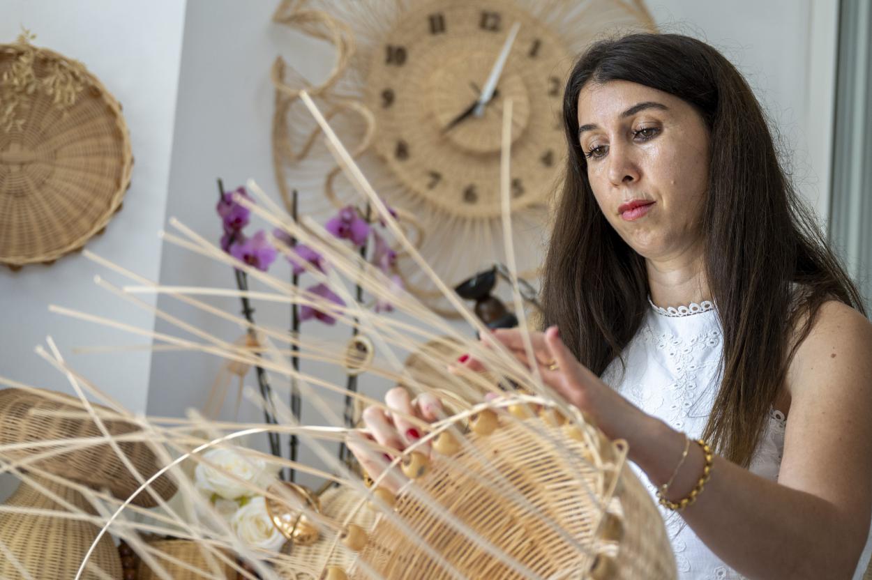 Mersin Büyükşehir Belediyesi’nin destekleriyle hedeflerine hızla ilerleyen üretici kadınlardan biri de Sedef Türkay. Özel sektörde uzunca bir süre çalıştıktan sonra işi bıraktığını ve ev ekonomisine katkısını sürdürebilmek için yeni arayışlar içine girdiğini söyleyen Türkay, rattan dokuma ile tanışma hikayesini anlattı. Türkay, “Rattan dokuma ile 3 yıl önce tanıştım. Özel sektörün yoğunluğundan dolayı çocuklarımla ilgilenemiyordum. İşi bıraktım ve evde ne yapabilirim derken, rattanları gördüm ve ‘ben bunu yapabilirim’ dedim. Mersin’de rattan eğitimi veren birini bulamadım. İnternetten video izleyerek dokumayı öğrendim” dedi.