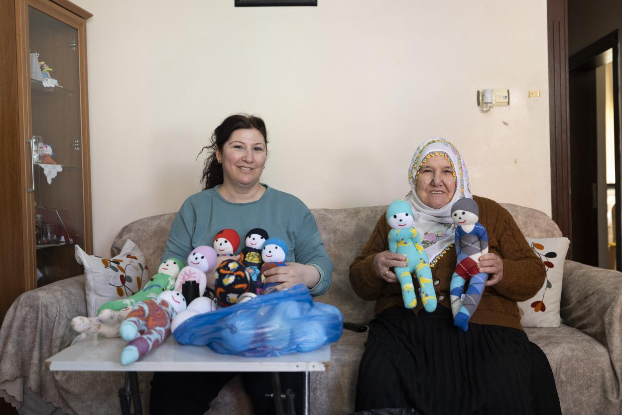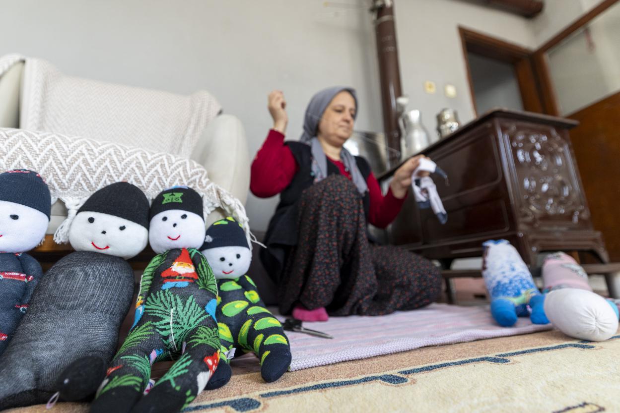 Çoraptan oyuncak yapan kadınlardan Fatma Kaplan ise bu projeyle tanışmadan önce evde hiçbir iş yapmadan oturduğunu anlatarak, “Bana eğlence oldu, stresimi atıyorum, para kazanıyorum. Önceden evde sıkılıyordum. Bol bol telefonla oynuyordum ve bu sayede telefonla oynamam da azaldı. Hem evin işini yapıyorum hem de oyuncak yapıyorum. Eve katkıda bulunuyorum. Küçük çocuklar da bunlarla mutlu olacak diye daha çok mutlu oluyorum. Mahallemdeki çocuklara da yapıp dağıtacağım. Kadınların olduğu yerde üretim, üretimin olduğu yerde umut vardır” diye konuştu.