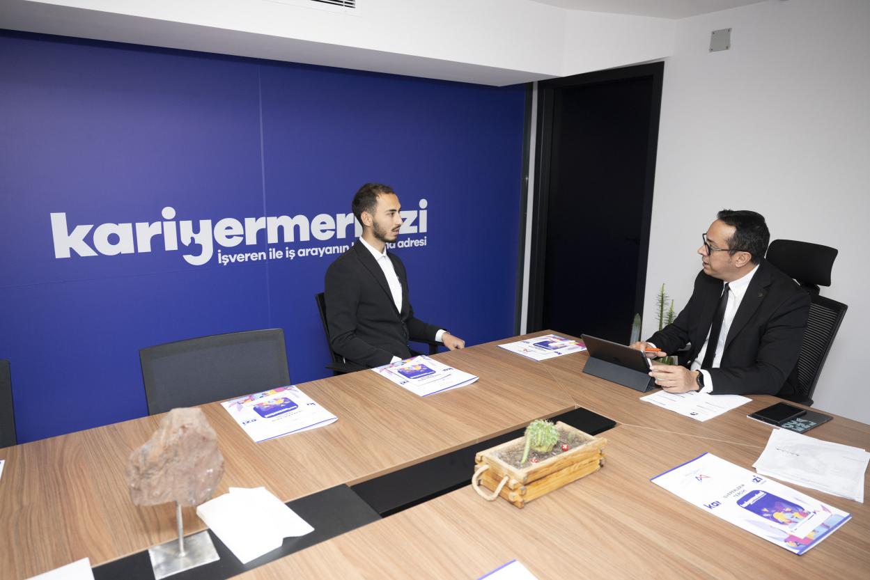 Kariyer Merkezi Müdürü Serkan Özada, 2019 yılından bu yana Kariyer Merkezi’nin iş arayanlar, öğrenciler ve gençlerin yanı sıra işverenler için de danışmanlık hizmeti sunduğunu ifade etti. Kariyer Merkezi’nin temel amacının ‘üniversite-sanayi-kent’ iş birliğine katkı sunmak olduğu kaydeden Özada, “Sadece eğitim mentörlüklerine değil; öğrencilerimizin, özellikle üniversiteli gençlerin istihdama katılımını sağlayacak programlara imza atmaya çalışıyoruz. ‘Kampüsten Sektöre-Genç Yetenek Programı’ adını verdiğimiz bu proje ile üniversite öğrencilerimizin mezun olmadan önce iş dünyasını tanımalarını amaçlıyoruz” dedi. Özellikle üniversite öğrencilerine iş deneyimi kazandırmak istediklerini söyleyen Özada, “Bu program sayesinde öğrenciler zaman yönetimi, çalışma ilkeleri ve vatandaş ilişkileri gibi birçok alanda deneyim sahibi olacaklar. Böylece, bir sonraki iş süreçlerinde çok büyük bir avantaj kazanacaklarını düşünüyoruz” diye konuştu.