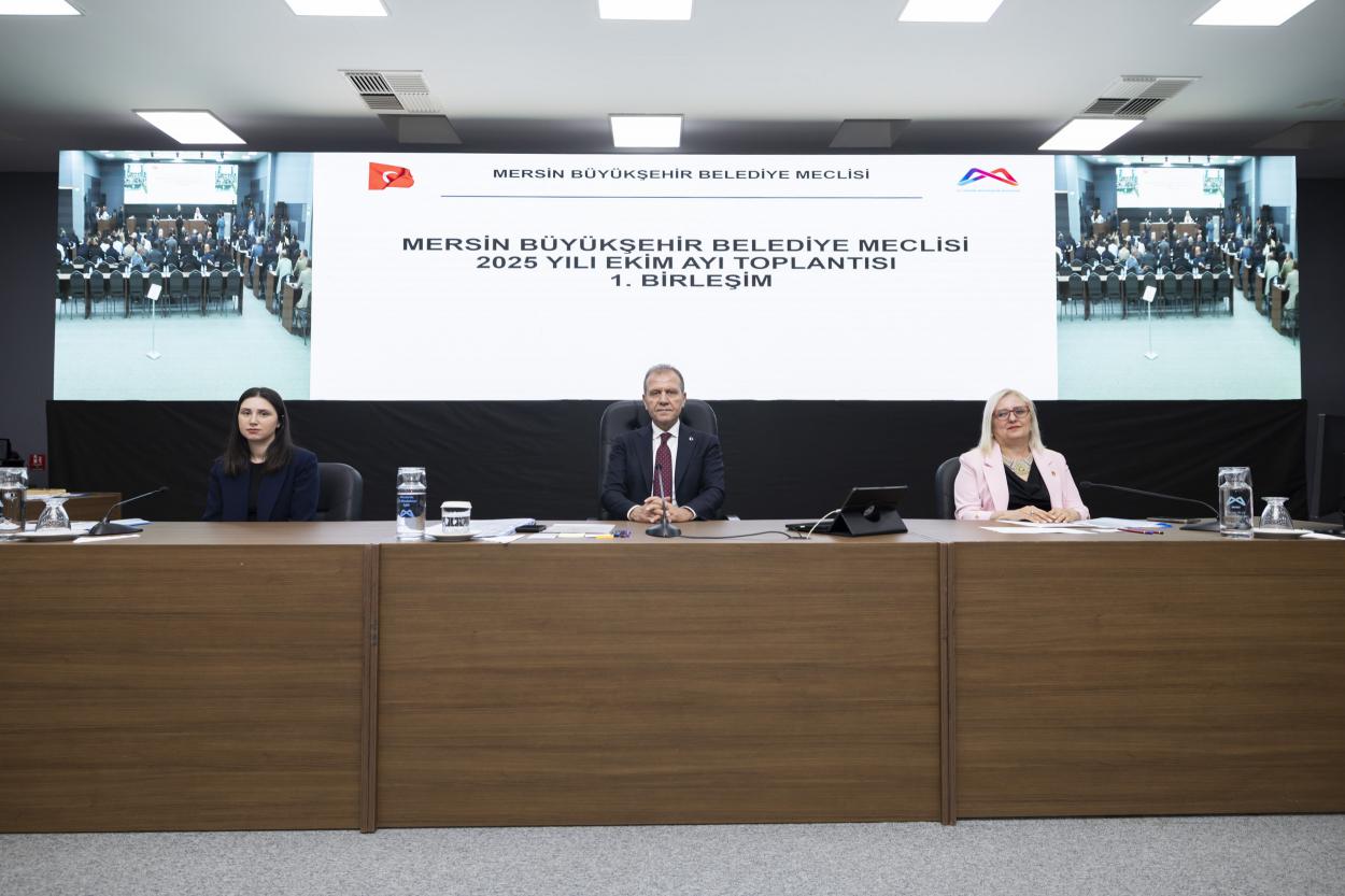 Mersin Büyükşehir Belediye Meclisi’nin 2025 Yılı Ekim Ayı Olağan Toplantısı 1. Birleşimi, Türkiye Belediyeler Birliği (TBB) Başkan Vekili ve Mersin Büyükşehir Belediye Başkanı Vahap Seçer başkanlığında gerçekleştirildi. Kongre ve Sergi Sarayı Çok Amaçlı Salon’da düzenlenen Meclis Toplantısı’nda Komisyonlara Havale Edilen 16 ve Birimlerden Gelen 29 madde olmak üzere toplam 45 madde görüşüldü.