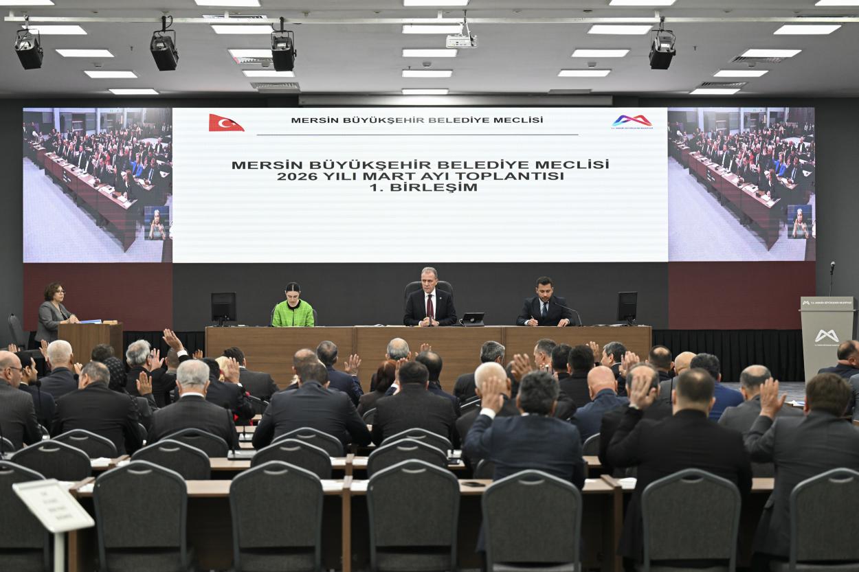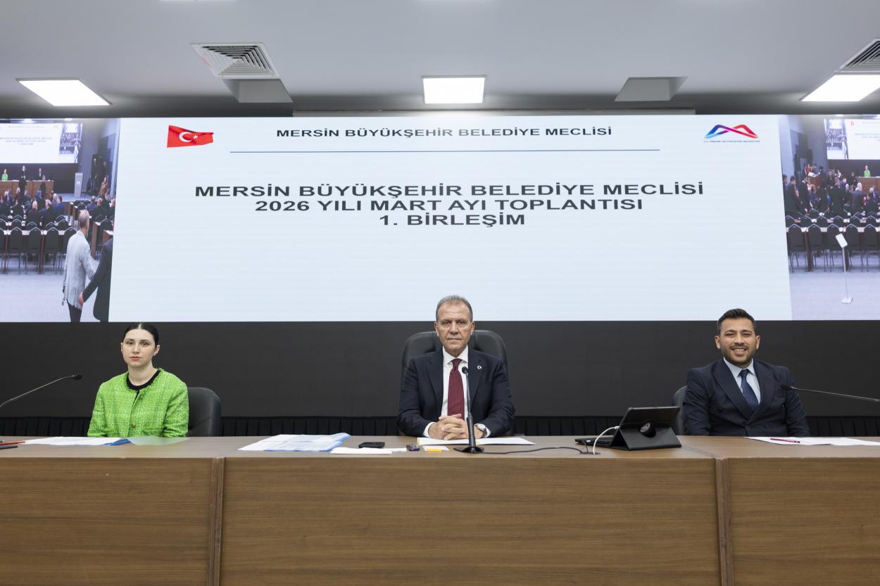 Mersin Büyükşehir Belediye Meclisi’nin 2026 Yılı Mart Ayı Olağan Toplantısı 1. Birleşimi, Türkiye Belediyeler Birliği (TBB) Başkan Vekili ve Mersin Büyükşehir Belediye Başkanı Vahap Seçer başkanlığında gerçekleştirildi. Kongre ve Sergi Sarayı Çok Amaçlı Salon’da gerçekleştirilen Meclis Toplantısı’nda Birimlerden Gelen 34 ve Komisyonlara Havale Edilen 14 olmak üzere toplam 48 madde görüşüldü.