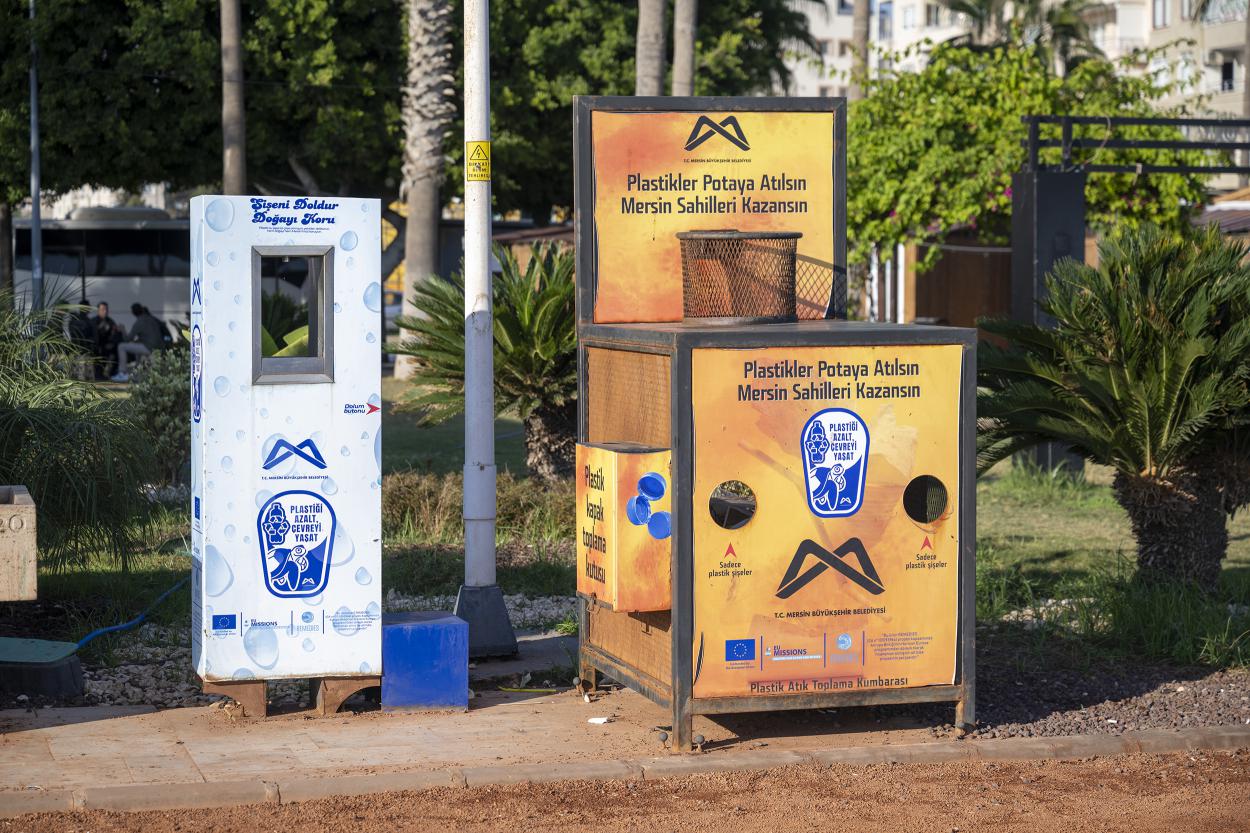 Mersin Büyükşehir Belediyesi İklim Değişikliği ve Sıfır Atık Dairesi Başkanlığı ile Dış İlişkiler ve Projeler Şube Müdürlüğü koordinesinde gerçekleştirilen ‘Plastiksiz Mersin Sahilleri İçin Birleşiyoruz’ projesi kapsamında, Adnan Menderes Bulvarı sahiline yerleştirilen plastik atık ünitelerinde 935 kg plastik atığa karşılık gelen 93 bin 500 adet pet şişe toplandı. Uygulama sayesinde, atıkların doğrudan veya dolaylı olarak denize ulaşmasının ve mikroplastik oluşumunun önüne geçildi. Son 1 yıl içinde 150 bin adet pet şişe kapağına karşılık gelen 150 kg plastik atık; saksı, anahtarlık ve acil durum düdüğü gibi ürünlere dönüştürülerek vatandaşlara ücretsiz dağıtıldı. Toplam 1 tona karşılık gelen plastik atık, 10 aylık süreçte geri dönüşüm döngüsüne dahil edildi.