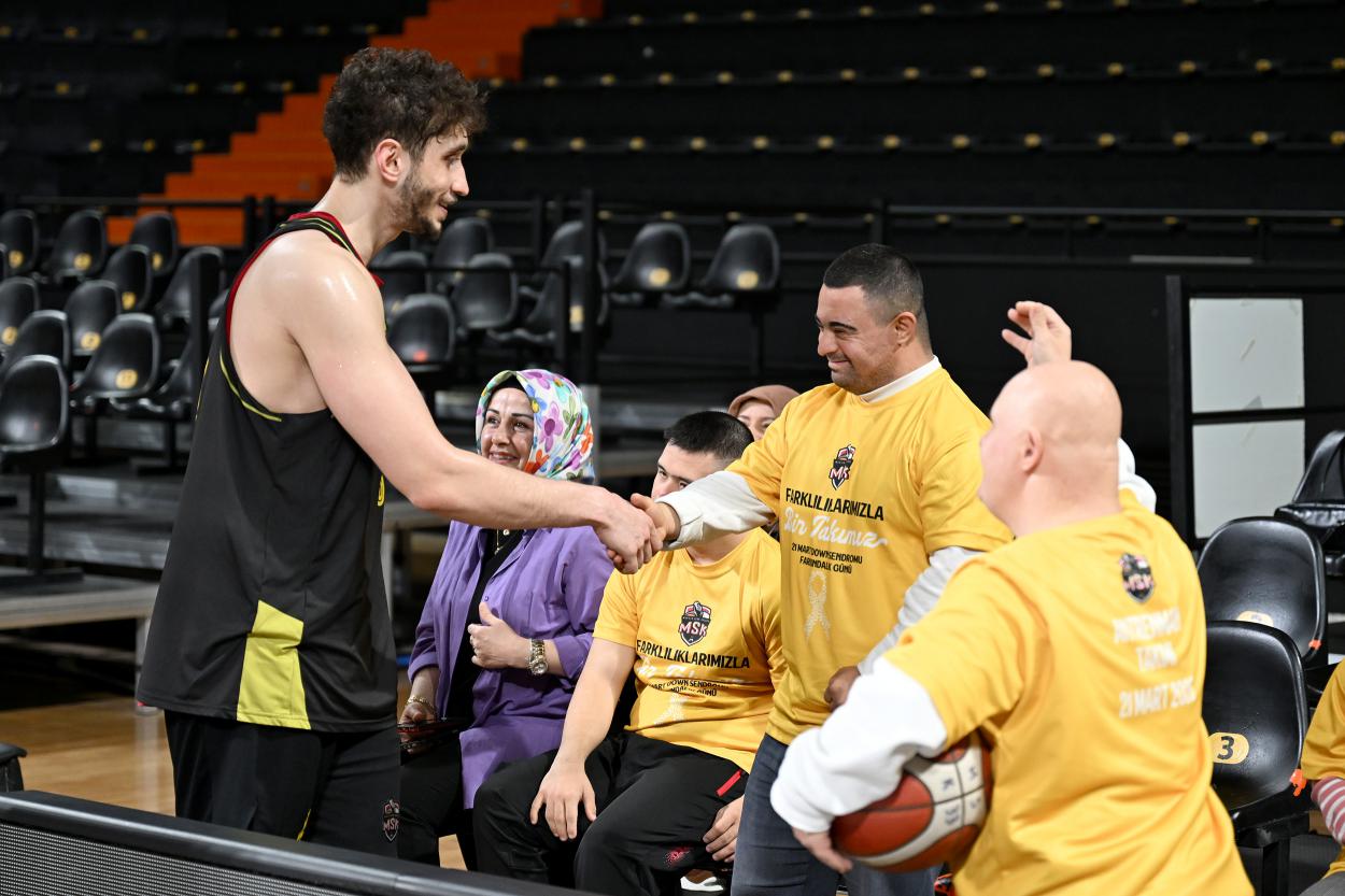 Sağlık İşleri Dairesi Başkanlığı Engelsiz Yaşam Merkezi Mola Evi özel eğitim öğretmeni Fatma Esra Gökdal, her yıl 21 Mart Dünya Down Sendromu Farkındalık Günü kapsamında farklı etkinlikler düzenlediklerini belirterek, öğrencilerin toplumsal yaşamda daha görünür olmasını amaçladıklarını söyledi. Bu kapsamda MSK Spor Kulübü’nün antrenmanına katıldıklarını ifade eden Gökdal, “Öğrencilerimizin her yerde varlığını fark ettirmeye çalışıyoruz. Bugün de MSK Spor Kulübü’nün antrenman maçına geldik. Çocuklarımız sporun içinde, gezilerde ve farklı etkinliklerde yer alabiliyorlar. Basketbol oynadılar, sporcularla tanıştılar, MSK maskotu Caretta ile fotoğraf çekildiler. Çok güzel bir ambiyans yakaladılar ve sıcak bir sevgi bağı oluştu” dedi.