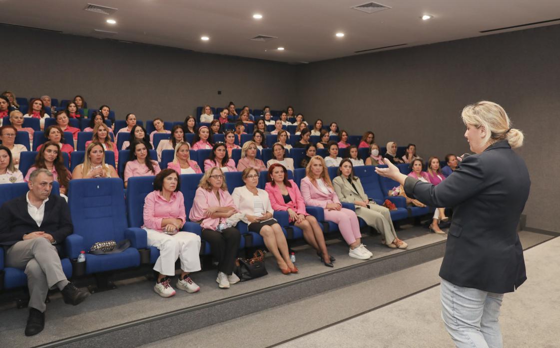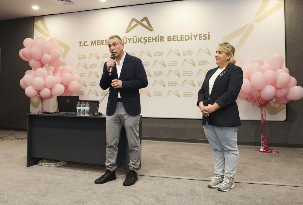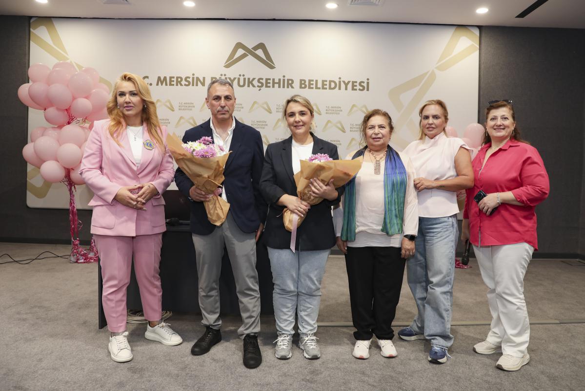 Mersin Büyükşehir Belediyesi’nde görev yapan Kadın Daire Başkanlarının da katıldığı ve Büyükşehir personeline yönelik düzenlenen farkındalık etkinliğinde; Kadın Doğum ve Hastalıkları Uzman Dr. Aslı Bilekdemir ile Kadın Doğum ve Hastalıkları Uzman Opr. Dr. Erdal Özmen sunum yaptı. Meme kanserine karşı alınacak önlemler, teşhis, risk faktörleri ve erken teşhisin önemi katılımcılara anlatıldı. Sağlık yaşam alışkanlıklarının hastalığı önlemedeki en etkili yöntem olduğunu belirten doktorlar, erken teşhis için elle muayenenin önemine dikkat çekti.