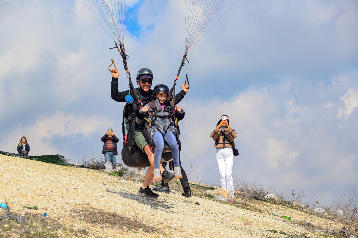 Yamaç paraşütü ile çocukların sevinci gökyüzüne yansıdı