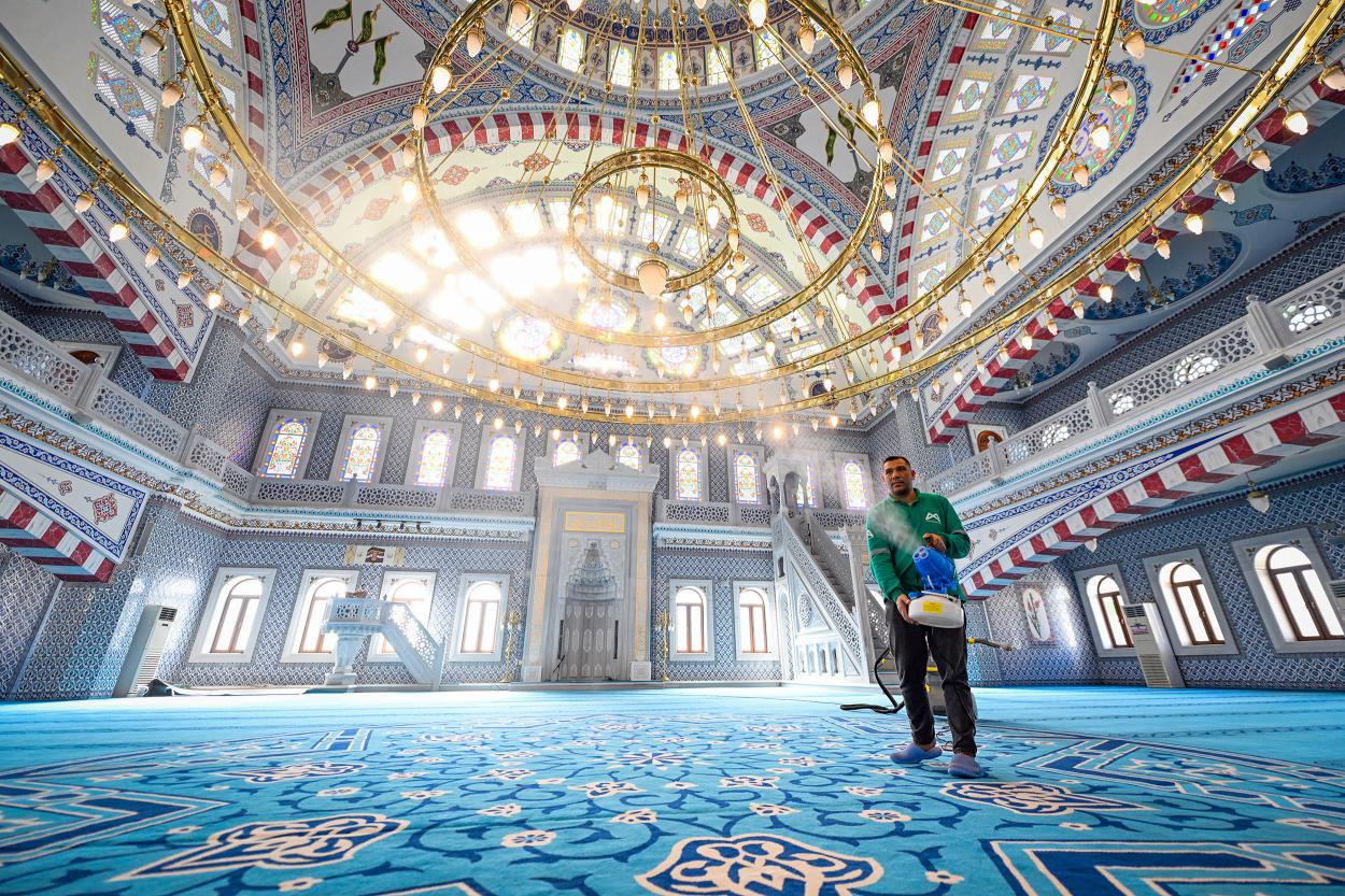 İbadethane temizlik ve dezenfekte ekiplerinin merkez ve ilçe ayrımı gözetmeden devam ettirdiği temizlik çalışmaları Ramazan ayı öncesinde hız kazandı. Vakumlu süpürge ve halı yıkama makinesi, gül suyu makinesi ve diğer temizleme araçları ile ibadet edilen mekanlar detaylı olarak temizlenirken, ibadethanelerin farklı bölümleri özenle sterilize ediliyor. Ahşap ve seramik gibi yerler özel temizlik malzemeleri ile silinirken, kullanılan tespihler de dezenfekte çalışmasından geçiriliyor.
