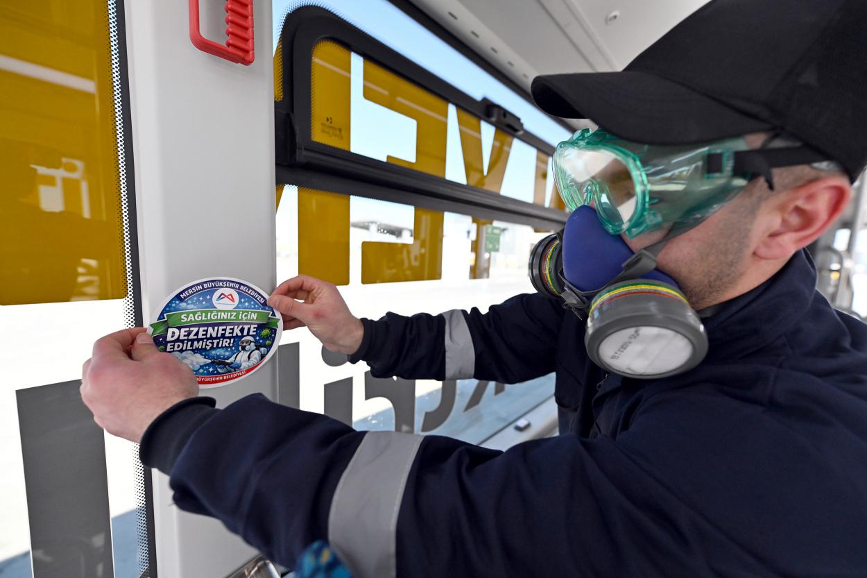 Demir dezenfekte işleminin gerçekleştirilmesinin ardından alınan numunelerle ilacın etkisini raporladıklarını söyleyerek, “Dezenfektasyon işlemleri yapıldıktan sonra araçların koruyucu sağlık bakımlarının yapıldığına dair Mersin Büyükşehir Belediyesi’ne ait stickerları oraya yapıştırmaktayız. Yolcularımız, bu stickerları gördüğü süre boyunca araçlarımızın sağlıklı, güvenli ve konforlu olduğundan tereddüt etmeden rahat bir şekilde seyahatlerini gerçekleştirebilirler” ifadelerini kullandı.