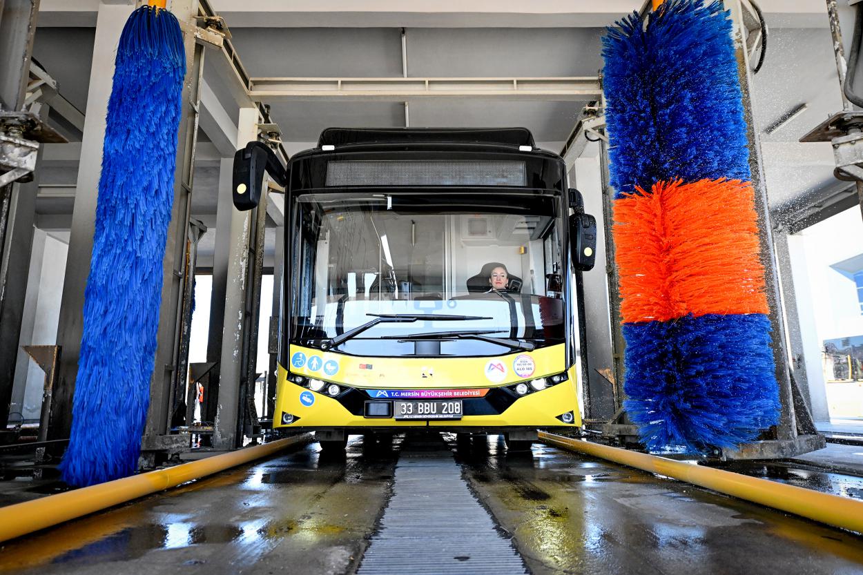 Mersin Büyükşehir Belediyesi ekipleri, toplu taşıma araçlarının gün boyunca güvenli şekilde hizmet verebilmesi için çalışmalarını aralıksız sürdürüyor. Mersin Büyükşehir Belediyesi Ulaşım Hizmetleri Dairesi Başkanlığı, toplu taşıma araçlarında hem yolcu konforunu hem de hijyen koşullarını en üst seviyede tutmak için kapsamlı bir hazırlık süreci yürütüyor. Günün ilk ışıklarından gece saatlerine kadar hizmet veren otobüsler, sefere çıkmadan önce birçok aşamadan geçirilerek vatandaşların, güvenli ve steril koşullarda yolculuk yapması sağlanıyor.