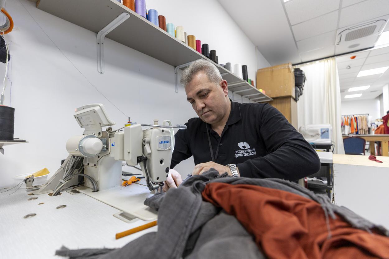 Mersin Şehir Tiyatrosu kostüm dikim atölyesinde görev yapan terzi ve kostüm sorumlusu Emine Ekici, kostüm atölyesinin 2022 yılında kurulduğunu anlatarak, “Bütün oyunlarımızın kostümlerini burada üretiyoruz. Kesim, dikim, tadilat, geri dönüşüm, ne gerekiyorsa hepsini kendi atölyemizde yapıyoruz. Mersin Şehir Tiyatrosu kostüm atölyemizde, 14 oyun için yüzlerce kostüm ve dekor aksesuar, kukla ürettik” dedi.