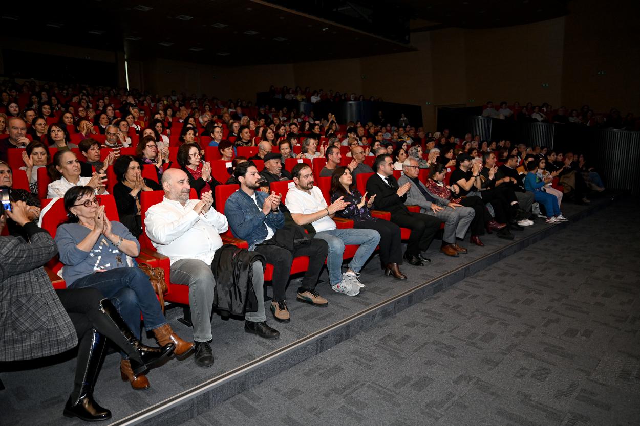 Gelen seyirciler ile “27 Mart Dünya Tiyatro Günü Bildirisi”ni paylaşan Mersin Büyükşehir Belediyesi Şehir Tiyatrosu Genel Sanat Yönetmeni Ozan Erdönmez, şu sözlere yer verdi;
