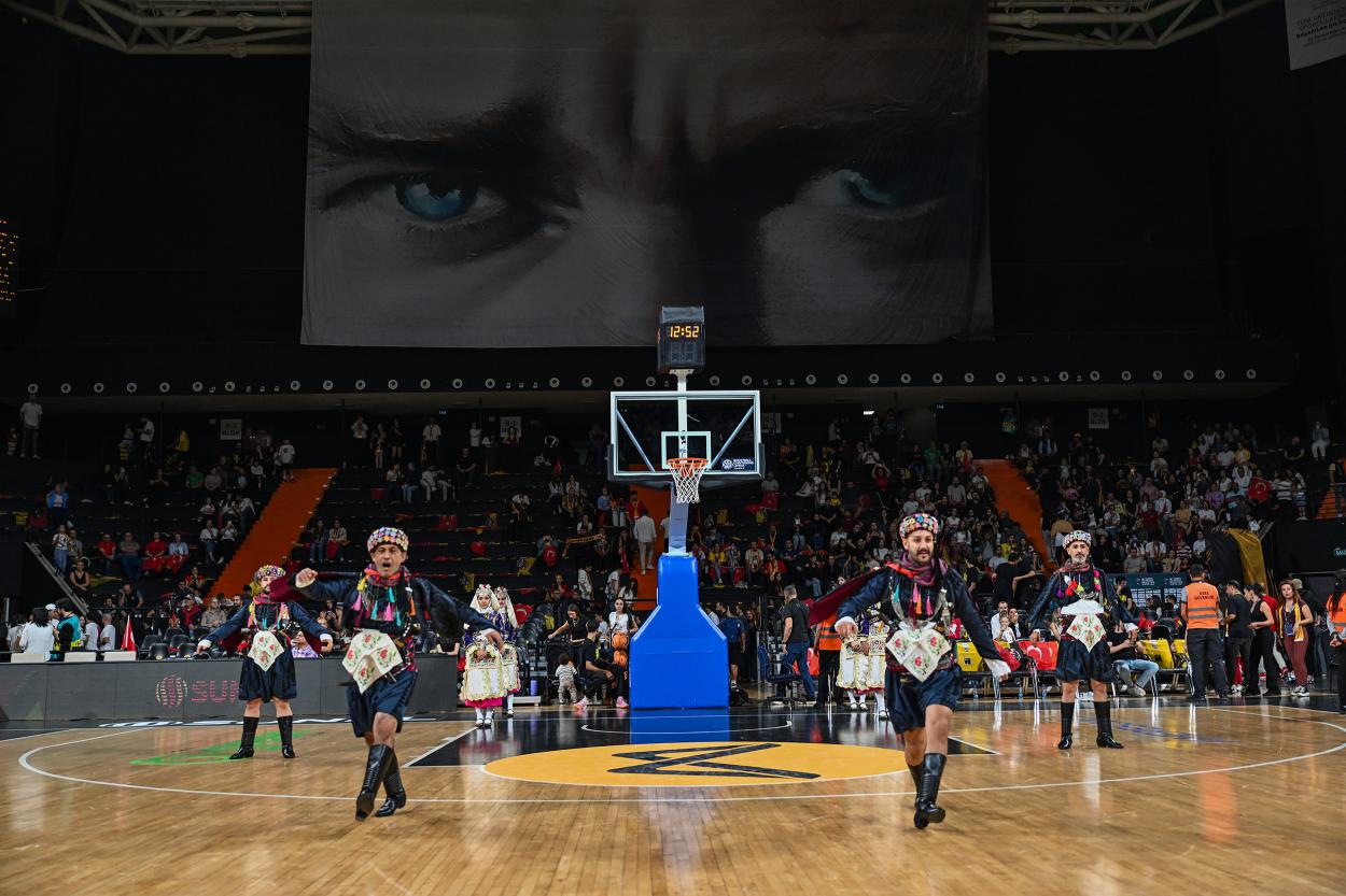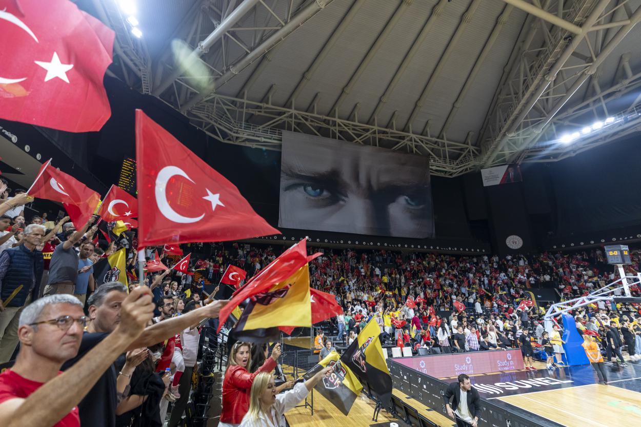 Maçta oyuncular hem ısınmaya hem de karşılaşmaya Cumhuriyet Bayramı ve Atatürk temalı tişört ve pankartla çıktı. Oyuncular anons edilirken tavandaki dev ekranlarda yine aynı temalı görseller yer aldı. Tribünleri dolduran Mersinliler de ellerinde Türk bayrakları ile şehrin takımına destek verdi. Attıkları sloganlarla takıma desteğini sonuna kadar hissettiren ve tribünleri hınca hınç dolduran taraftarlar maç boyunca Carettalar’ın motivasyonu oldu. Sahadaki dev Atatürk bayrağı ise ve maç boyunca sık sık çalınan Cumhuriyet marşları da sahadaki enerjiyi en yüksekte tuttu.