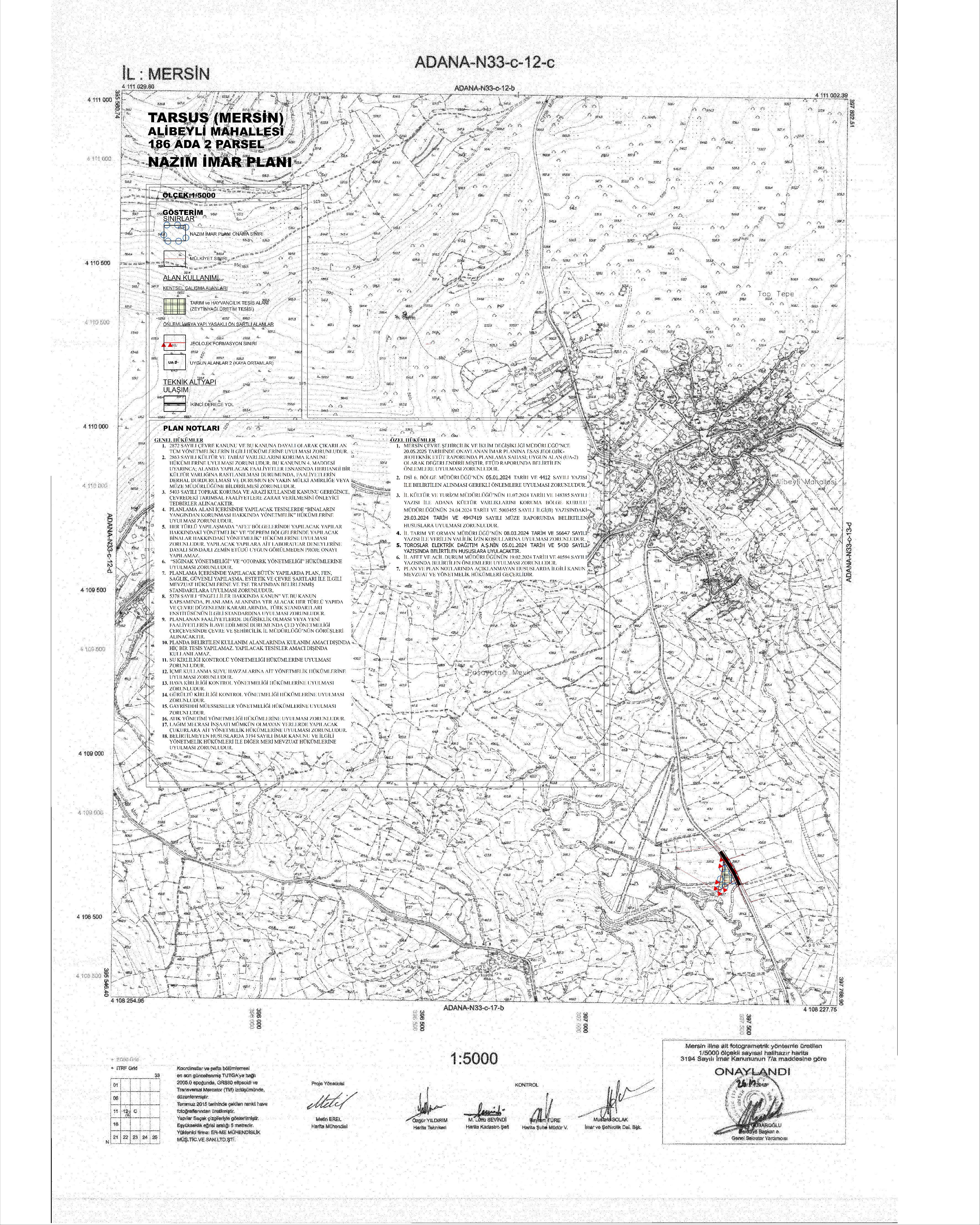 Mersin ili, Tarsus ilçesi, Alibeyli mahallesi, 186 ada 2 parsele ilişkin 1/5000 ölçekli Nazım İmar Planı değişikliği