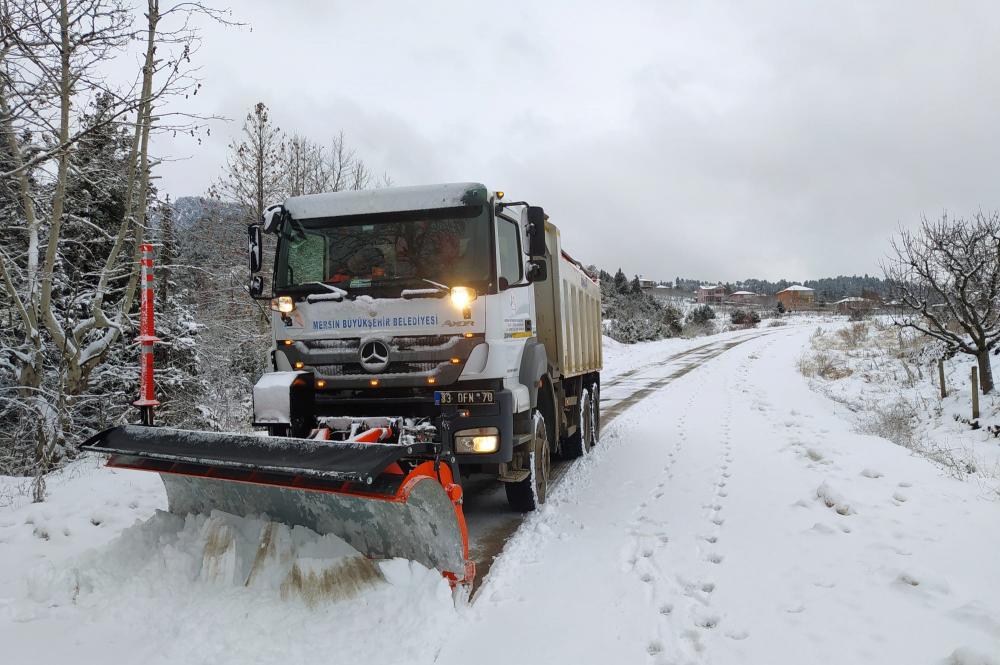 Özellikle yüksek kesimlerde yoğun kar yağışının hayatı olumsuz etkilememesi için özverili personelimiz ve ekipmanlarımızla etkin ve seri çalışmalar yürütüyoruz. Tuzlama ve küreme özelliğine sahip karla mücadele eden araç ve iş makineleriyle yollar ekiplerimiz tarafından ulaşıma açık tutuluyor. Kent genelinde daha iyi hizmet sunmak için olumsuz hava şartlarından kaynaklanan, yolların kapanması, ulaşımın aksaması gibi sorunları çözüyoruz. Mersin Büyükşehir Belediyemiz TEKSİN İletişim Koordinasyon ve Analiz Merkezi’ne iletilen başvuru ve tüm ihbarlara anında müdahale ediyor, İl Afet ve Acil Durum Müdürlüğü AFAD ve diğer paydaşlarla koordineli bir şekilde çalışmalar sürdürüyor.
