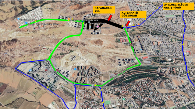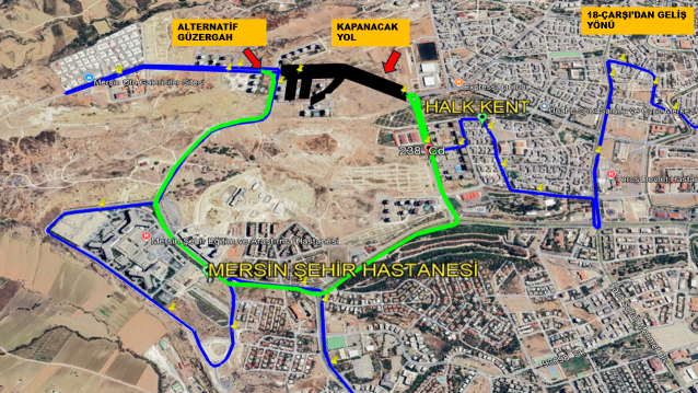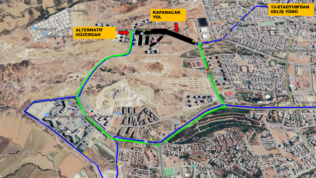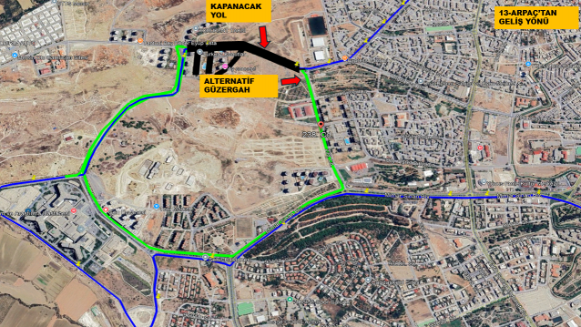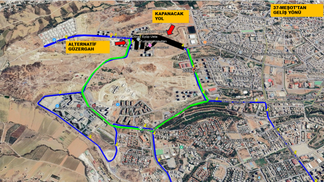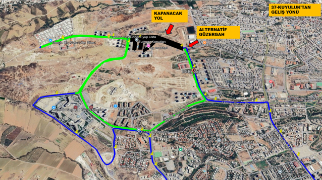 Araçlarımız çalışma süresince mevcut güzergâh yerine aşağıdaki alternatif rotayı izleyecektir: