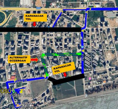 Mersin İli,Mezitli İlçesi, Meltem Caddesi’nde ve Gazi Paşa Caddesi’nde yapılacak yol yenileme çalışması nedeniyle 15.10.2025 tarihi itibarıyla yol çalışmaları başlatılacak olup cadde araç trafiğine kapatılacaktır.