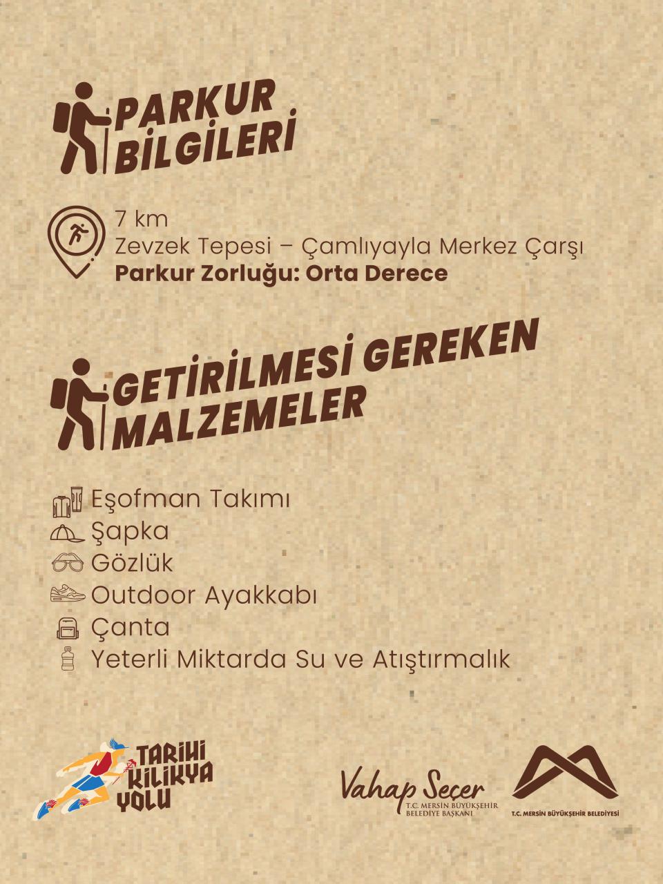 Tarihi Kilikya Yolu Yürüyüşü Çamlıyayla Parkuru 15 Kasım Cumartesi Kontenjan, 90 kişiliktir.