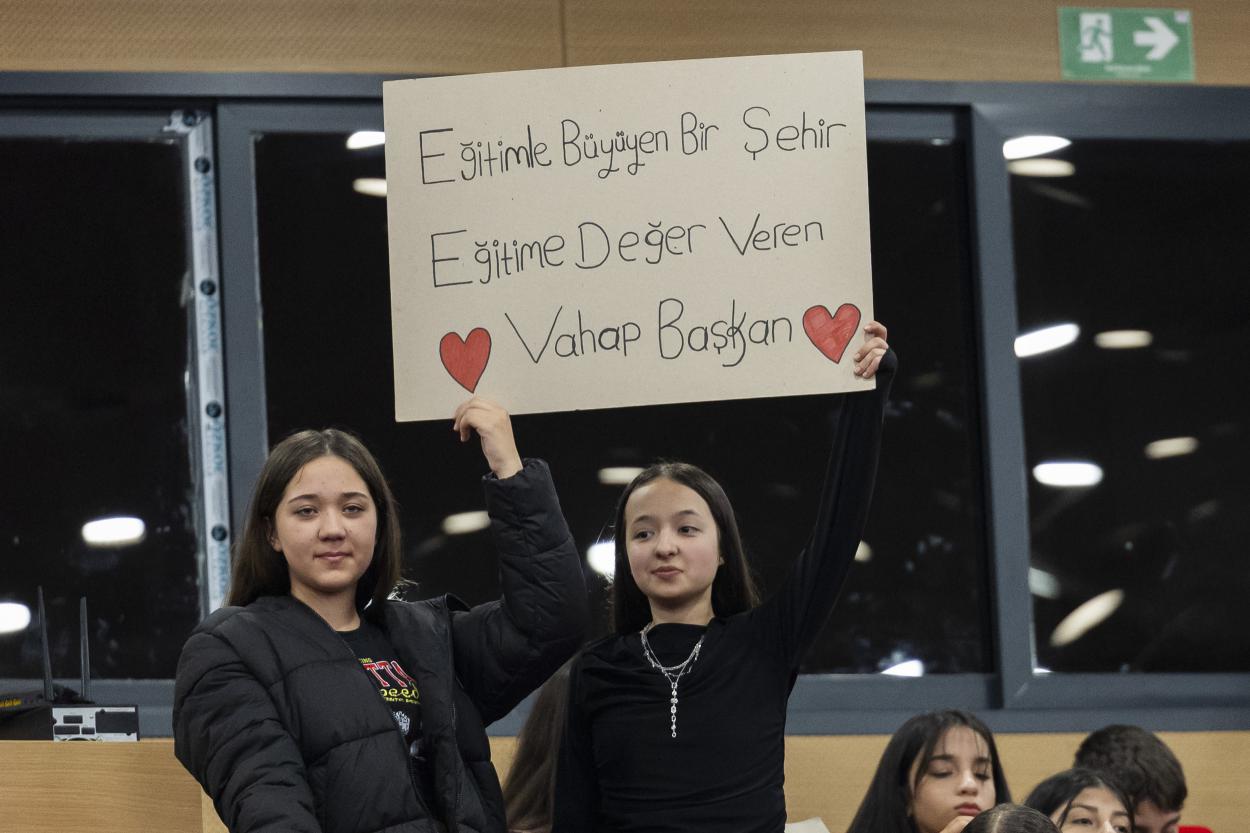 Mersin Büyükşehir Belediyesi Kongre Merkezi’nde gerçekleştirilen etkinlikte salonu dolduran öğrenciler; ‘Eğitime inanan başkan, bilgiyle büyüyen biz’, ‘Bugünün çocukları yarının umutlarıyız’, ve ‘Hedefimiz parlak bir gelecek, gençler bu yolda Vahap Seçer ile ilerleyecek’ yazılı dövizlerle coşku yaratırken, Başkan Seçer’in salona girmesiyle birlikte öğrencilerin heyecanı ve enerjisi daha da arttı. Büyükşehir Belediyesi’nin öğrencilere yönelik düzenlediği bu tür etkinlikler, gençlerin sınav sürecini daha verimli ve sağlıklı geçirmesine katkı sunarken; hem bilgilerini pekiştiren hem de keyifli vakit geçiren öğrenciler de sınav öncesi streslerini atma fırsatı buldu.