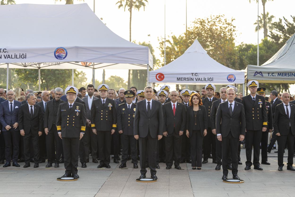 Cumhuriyet Meydanı’nda gerçekleştirilen tören, Mersin Valiliği, Akdeniz Bölge ve Garnizon Komutanlığı ve Mersin Büyükşehir Belediyesi ile kent protokolü tarafından Atatürk Anıtı’na çelenk sunulmasıyla başladı. Saat 09.05’te siren sesleri eşliğinde saygı duruşunda bulunuldu. Saygı duruşunun ardından Akdeniz Bölge ve Garnizon Komutanlığı Bandosu eşliğinde İstiklal Marşı’nın okunmasıyla resmi tören sona erdi.