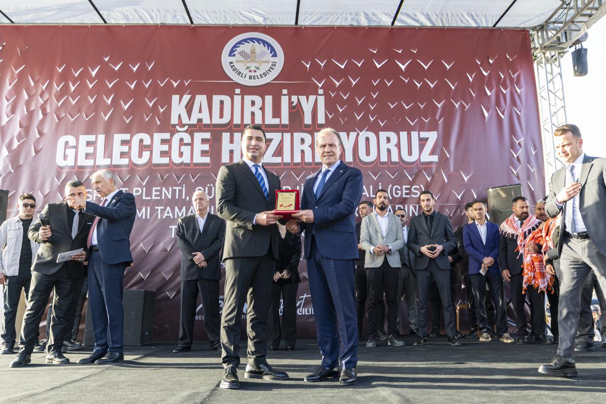 Protokol konuşmalarının ardından Kadirli Belediye Başkanı Mustafa Mert Olcar, kente sağladıkları katkılar dolayısıyla Başkan Seçer ve Başkan Karalar’a plaket takdim etti. Plaket takdiminin ardından protokol üyeleriyle birlikte sahnede gerçekleştirilen kurdele kesimiyle tesislerin resmî açılışı yapıldı. Program, toplu fotoğraf çekimiyle sona erdi.