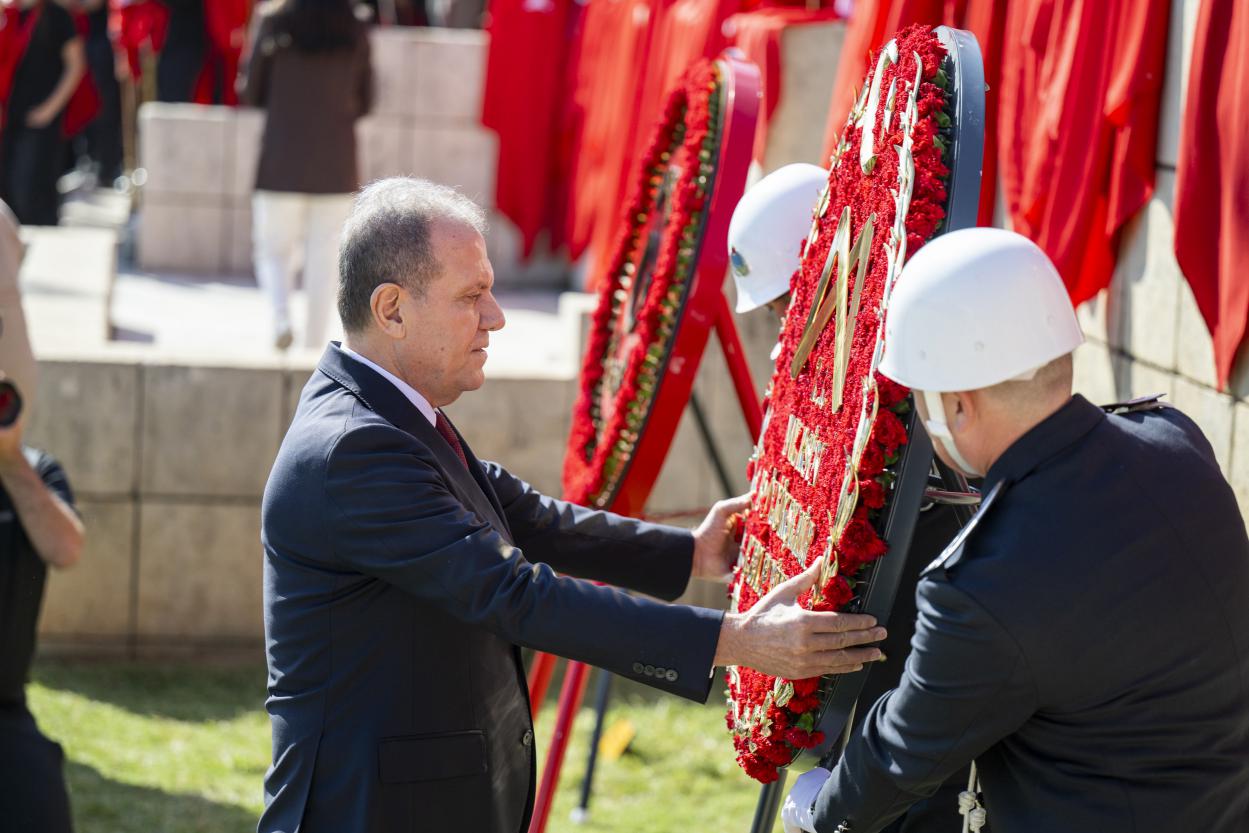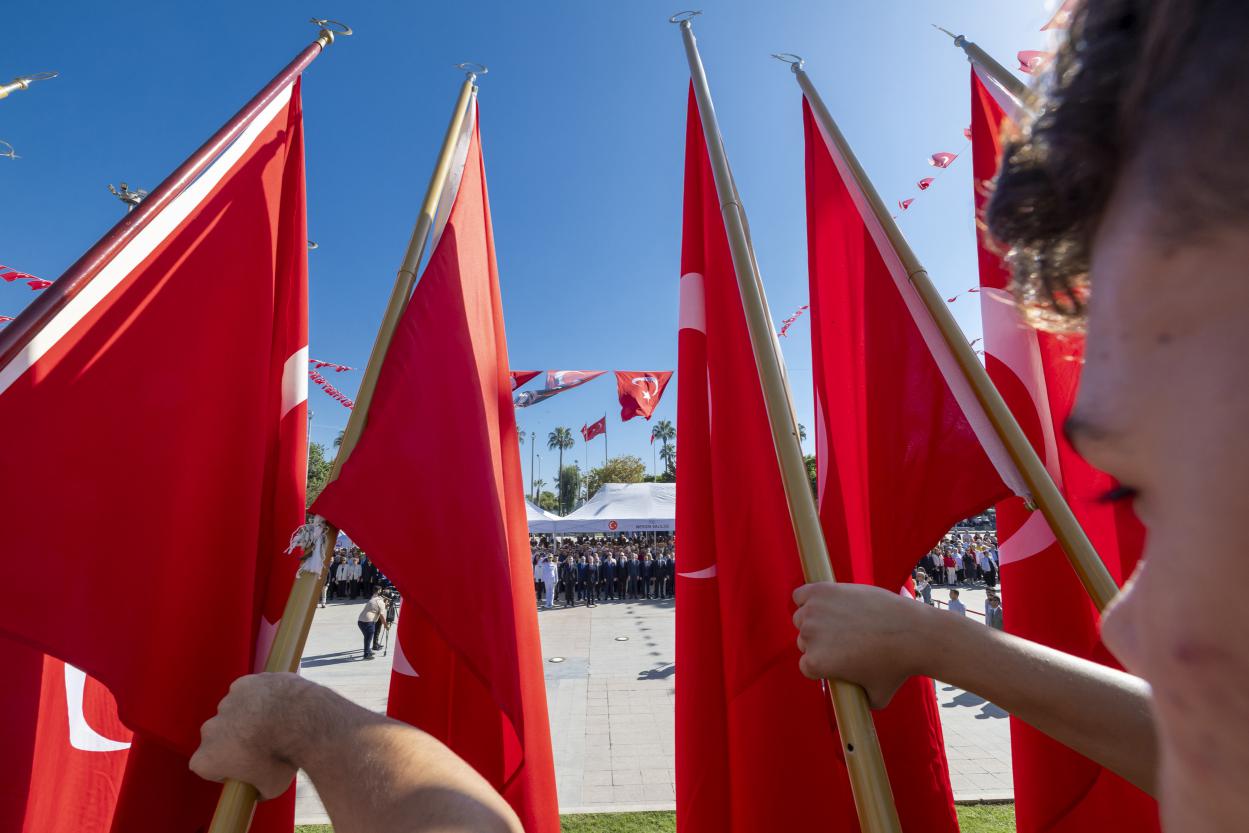 Türkiye Belediyeler Birliği Başkan Vekili ve Mersin Büyükşehir Belediye Başkanı Vahap Seçer, Cumhuriyet’in 102. yıl dönümü kapsamında Mersin Valiliği tarafından düzenlenen Çelenk Sunma Töreni’ne ve ‘Bayrak Yürüyüşü’ne katıldı. Cumhuriyet’in 102. yılına özel, 102 metre uzunluğundaki Türk bayrağı etrafında bir araya gelen Mersinliler, Mersin İdman Yurdu Meydanı’ndan Suphi Öner Öğretmenevi’ne kadar yürüdü.