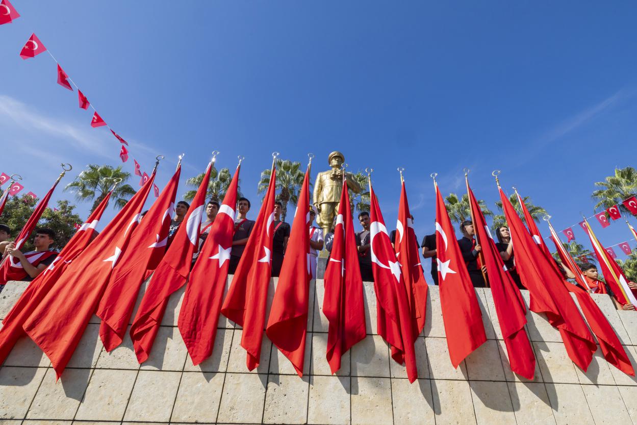 Yürüyüş boyunca ellerinde bayraklarla Cumhuriyet coşkusunu yaşayan öğrenciler, marşlar eşliğinde birlik ve beraberlik örneği sergiledi. Mersinlilerde bu coşkuya ortak olarak balkonlardan ve iş yerlerinden alkışlarla korteje destek verdi.