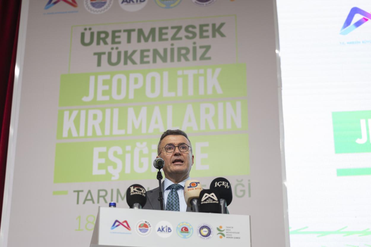 Türkiye Belediyeler Birliği (TBB) Başkan Vekili ve Mersin Büyükşehir Belediye Başkanı Vahap Seçer, tarımın geleceğini konuşmak ve sürdürülebilirliği sağlamak amacıyla; Mersin Büyükşehir Belediyesi, Mersin Ticaret ve Sanayi Odası (MTSO), Akdeniz İhracatçılar Birliği (AKİB), Mersin Ziraat Odası, TMMOB Ziraat Mühendisleri Odası Mersin Şubesi ve TMMOB Gıda Mühendisleri Odası Mersin Şubesi iş birliğinde bu yıl 5.’si düzenlenen ‘Üretmezsek Tükeniriz’ konferans serisinin ‘Jeopolitik Kırılmaların Eşiğinde Tarımın Geleceği’ başlıklı programına katıldı.