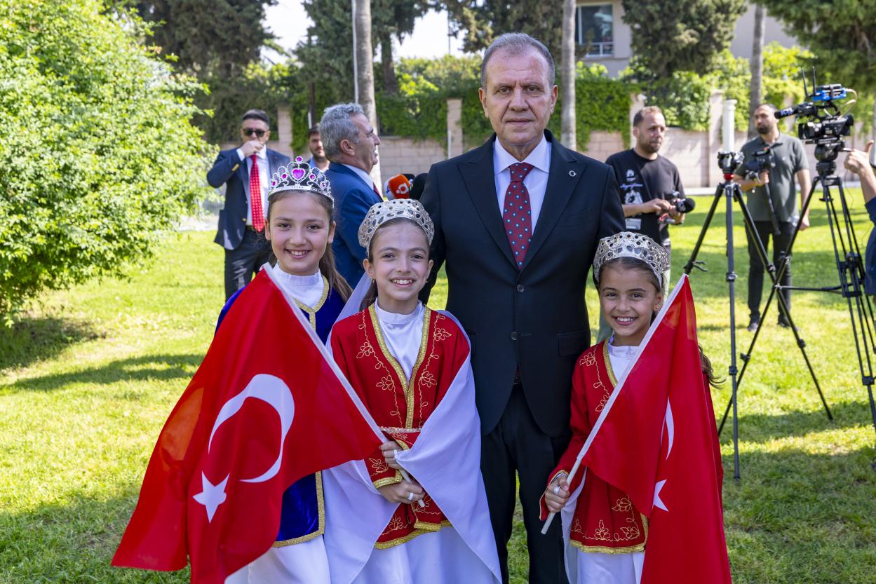 Törene; Başkan Vahap Seçer ve Meral Seçer’in yanı sıra; Mersin Valisi Atilla Toros ve eşi Dudu İrem Toros, Akdeniz Bölge ve Garnizon Komutanı Tuğamiral Soner Kazankaya, kent protokolü ile çok sayıda vatandaş ve çocuklar katıldı. Saygı duruşu ve İstiklal Marşı’nın okunmasıyla başlayan törende ilk olarak İl Milli Eğitim Müdürü Muhammed Özdemirci günün anlam ve önemine ilişkin bir konuşma gerçekleştirdi. İl genelinde düzenlenen resim, şiir ve kompozisyon yarışmalarında dereceye giren öğrencilere ödüllerinin verilmesiyle devam eden tören, öğrencilerin bayrak gösterisi ve şiirlerin okunmasıyla sona erdi. Törenin tamamlanmasının ardından çocuklarla bir araya gelen Başkan Seçer ile Meral Seçer, kent protokolü eşliğinde toplu fotoğraf çekimine katıldı.
