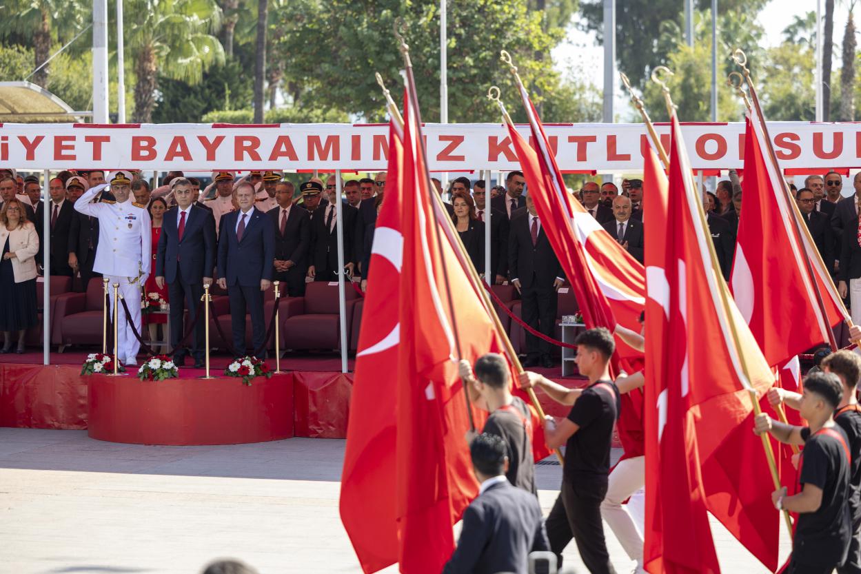 Programda ayrıca Akdeniz Bölge ve Garnizon Komutanlığı Bandosu eşliğinde resmigeçit töreni yapıldı. Geçiş esnasında ise Adana İncirlik’ten kalkan ve Türk Hava Kuvvetleri (THK) 152. Akıncı Filo’ya bağlı F-16 savaş uçakları, gökyüzünün semalarında gösterilerini sergiledi. Mersin Büyükşehir Belediyesi İtfaiye Dairesi Başkanlığı ile Zabıta Dairesi Başkanlığı ekipleri de geçit töreni esnasında vatandaşlardan büyük alkış aldı.