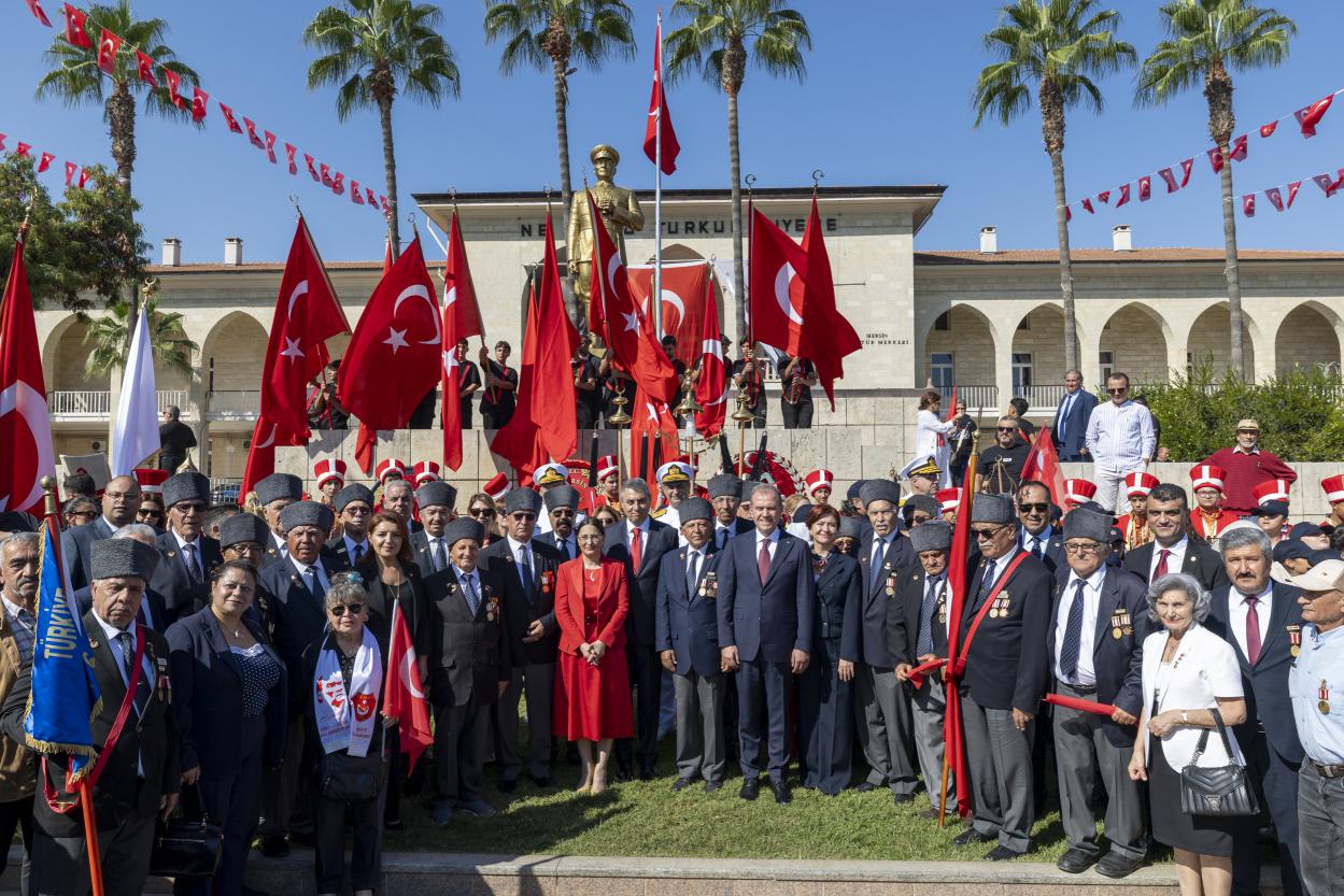 İlk olarak Kültür Merkezi Şeref Salonu’nda tebrikat töreni ile başlayan program, Cumhuriyet Meydanı’nda devam etti. Başkan Seçer, Vali Toros ve Tuğamiral Darcan’ın halkın bayramını kutlamasıyla başlayan program, saygı duruşu ve İstiklal Marşı ile devam etti. Vali Toros’un günün anlam ve önemine ilişkin konuşması ile süren programda bir öğrenci tarafından Cumhuriyet’in 102. yılı ile ilgili şiir okundu.