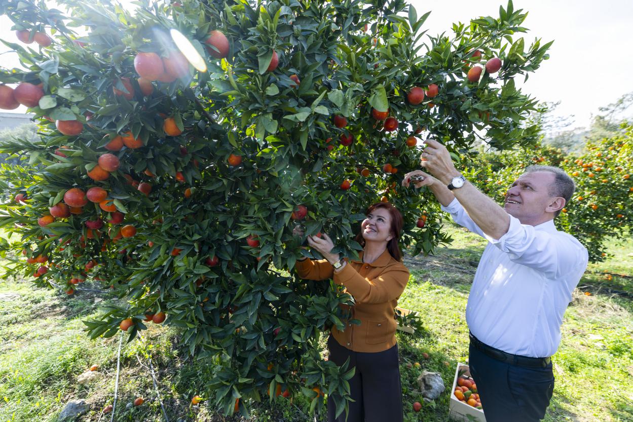Program, Başkan Seçer ile Meral Seçer’in coğrafi işaret tesciline sahip Mersin Kan Portakalının hasadını yapmasıyla başladı.